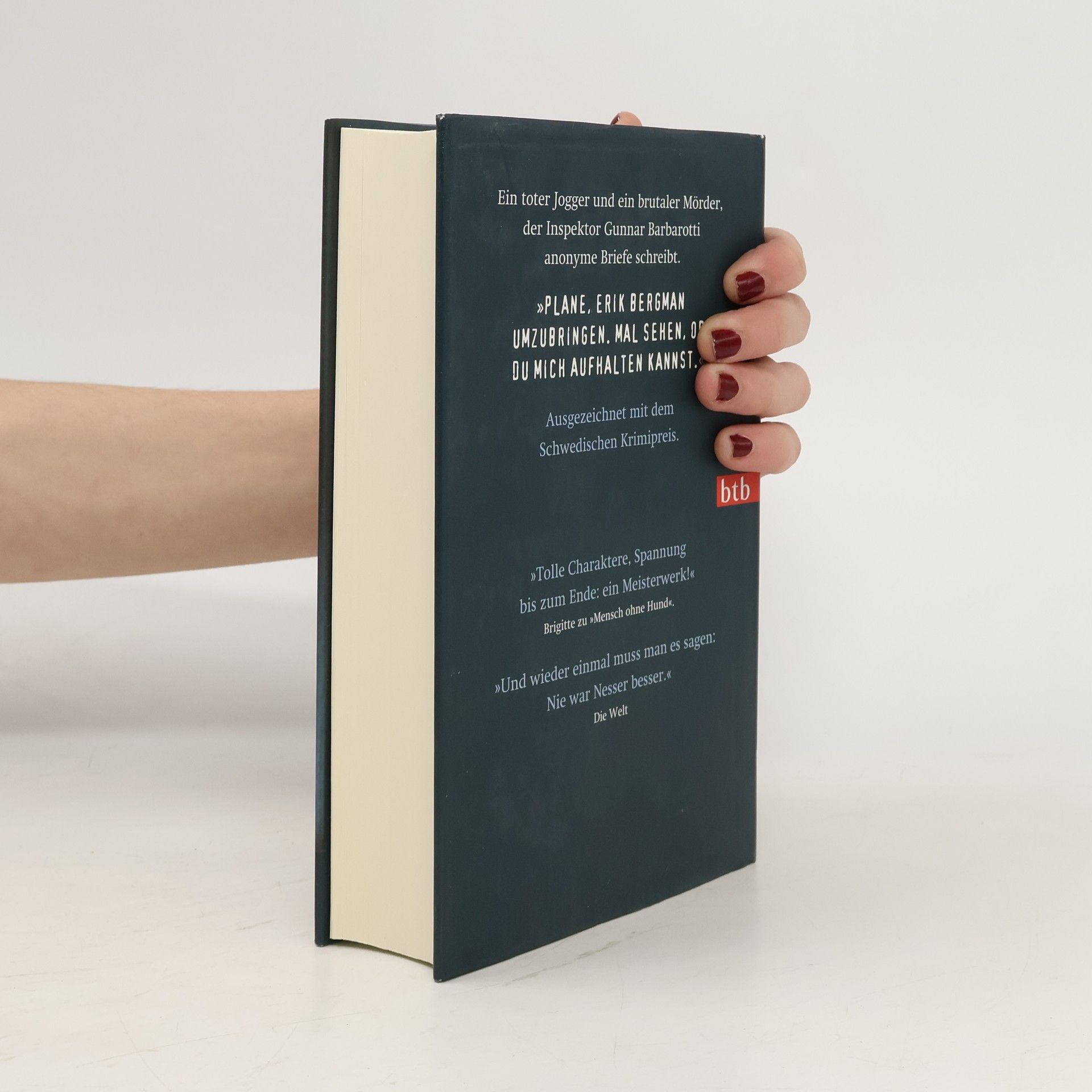 Ein toter Jogger und ein brutaler Mörder, der Barbarotti anonym Briefe schreibt. In der Bretagne verbringen schwedische Touristen vergnügte Urlaubstage im Finistère. Sechs Personen, darunter zwei Paare und zwei Einzelkämpfer, schließen während ihrer Freizeit Freundschaft. Sie baden, essen, unternehmen Ausflüge und flirten leicht über die Ehegrenzen hinweg. Nach den Ferien trennen sich ihre Wege, und es bleiben nur vereinzelte Fotos und ein anonymes Tagebuch, das ihre Eskapaden dokumentiert. Fünf Jahre später beginnt jemand, sie nacheinander zu töten, wobei die Morde jeweils durch Briefe an Inspektor Gunnar Barbarotti angekündigt werden. Der Fall erregt mediale Aufmerksamkeit, während die Polizei unter Druck steht. Der Mörder spielt ein gefährliches Spiel mit den Ermittlern und bleibt unberechenbar. Was geschah damals in der Bretagne, und warum erhält ausgerechnet Barbarotti die Briefe? Im zweiten Buch um den Inspektor begegnen wir dem geläuterten Zweifler, dessen Berufskarriere ihm immer dubioser erscheint, während sein Privatleben neue Perspektiven eröffnet.