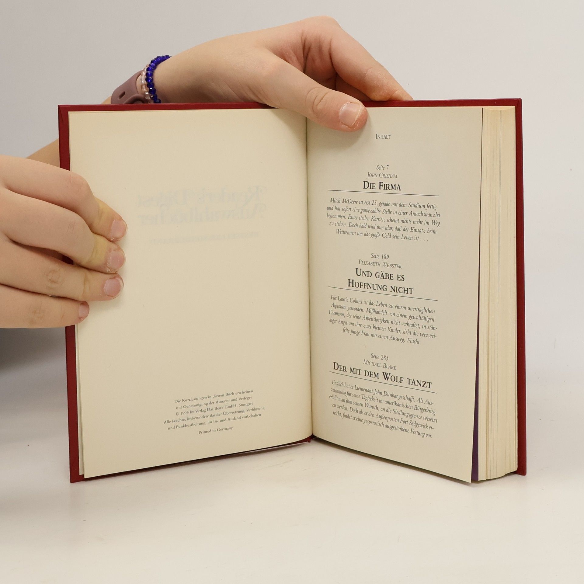 There are currently of book Reader's Digest Auswahlbücher. Die Firma. Und gäbe es Hoffnung nicht. Der mit dem Wolf tanzt (1995) in stock.