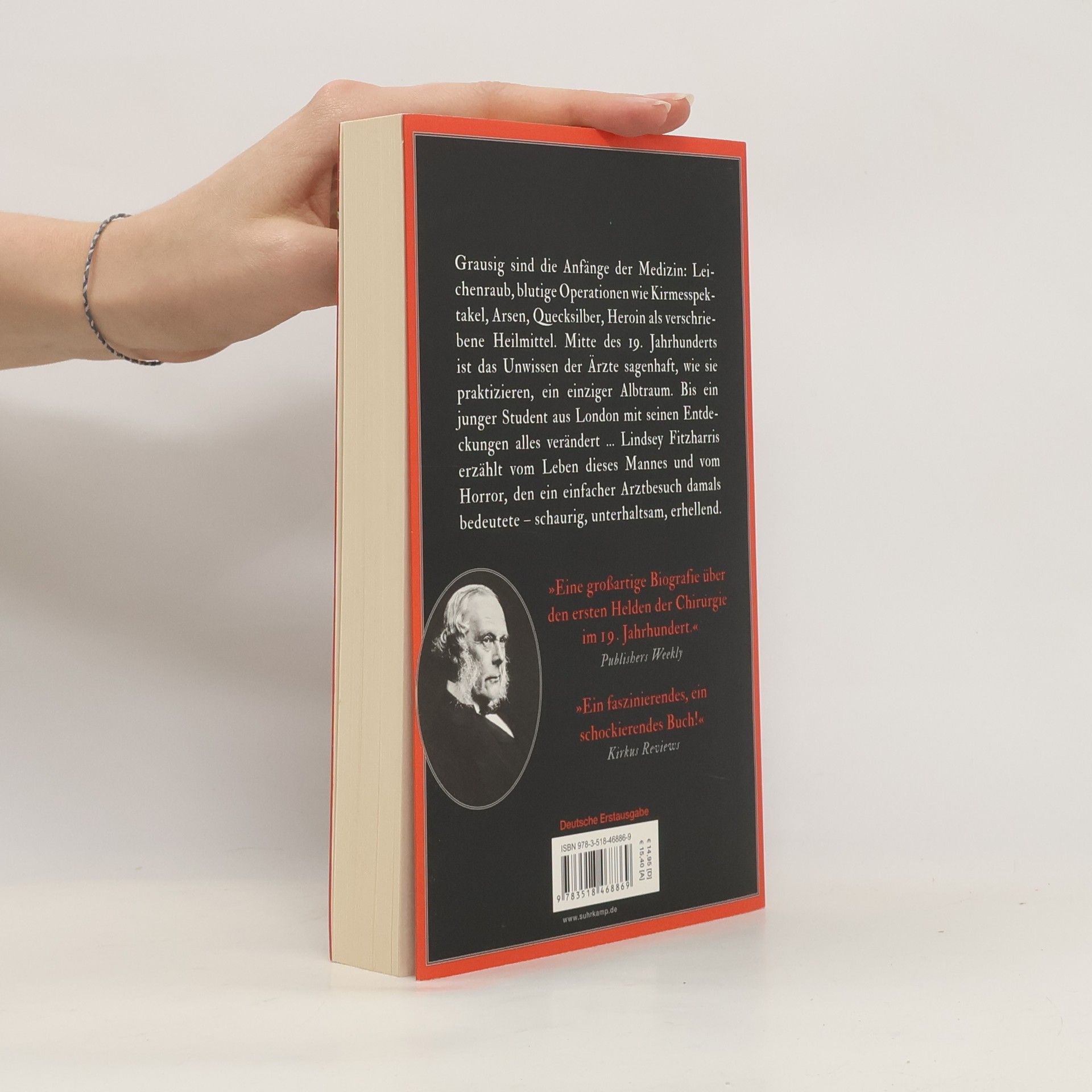 Grausig sind die Anfänge der Medizin: Leichenraub, blutige Operationen wie Kirmesspektakel, Arsen, Quecksilber, Heroin als verschriebene Heilmittel. Mitte des 19. Jahrhunderts ist das Unwissen der Ärzte sagenhaft, wie sie praktizieren, ein einziger Albtraum. Bis ein junger Student aus London mit seinen Entdeckungen alles verändert … Lindsey Fitzharris erzählt vom Leben dieses Mannes und vom Horror, den ein einfacher Arztbesuch damals bedeutete – schaurig, unterhaltsam, erhellend. Als Joseph Lister 1844 sein Studium in London beginnt, ist die medizinische Versorgung der Bevölkerung desaströs: Die Krankenhäuser sind überfüllt und verseucht. Um aufgenommen zu werden, müssen Patienten genug Geld für die eigene Beerdigung mitbringen. In den Operationssälen arbeiten Chirurgen in Straßenklamotten vor schaulustigem Publikum. Warum fast alle Patienten sterben, wie sich Krankheiten ausbreiten, darüber herrscht nicht die geringste Einigkeit, nur hanebüchene Theorien. Joseph Lister wird dann Chirurg, er will ganz praktisch helfen. Und von Neugier und hellem Verstand geleitet, entwickelt er eine Methode, die das Sterben vielleicht beenden kann …