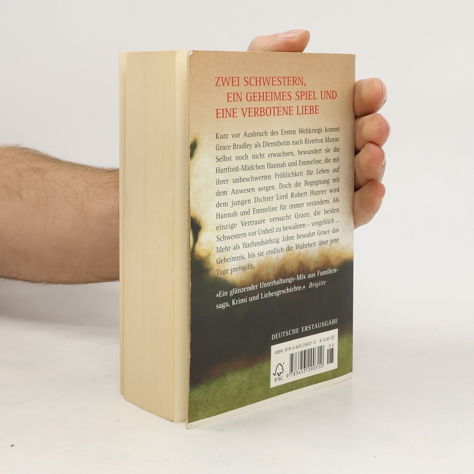 Zwei Schwestern, ein geheimes Spiel und eine verbotene Liebe Kurz vor Ausbruch des Ersten Weltkriegs kommt Grace Bradley als Dienstbotin nach Riverton Manor. Selbst noch nicht erwachsen, bewundert sie die Hartford-Mädchen Hannah und Emmeline, die mit ihrer unbeschwerten Fröhlichkeit für Leben auf dem Anwesen sorgen. Doch die Begegnung mit dem jungen Dichter Lord Robert Hunter wird Hannah und Emmeline für immer verändern. Als einzige Vertraute versucht Grace die beiden Schwestern vor Unheil zu bewahren – vergeblich …Mehr als 75 Jahre bewahrt Grace das Geheimnis, bis sie endlich die Wahrheit über jene Tage preisgibt.