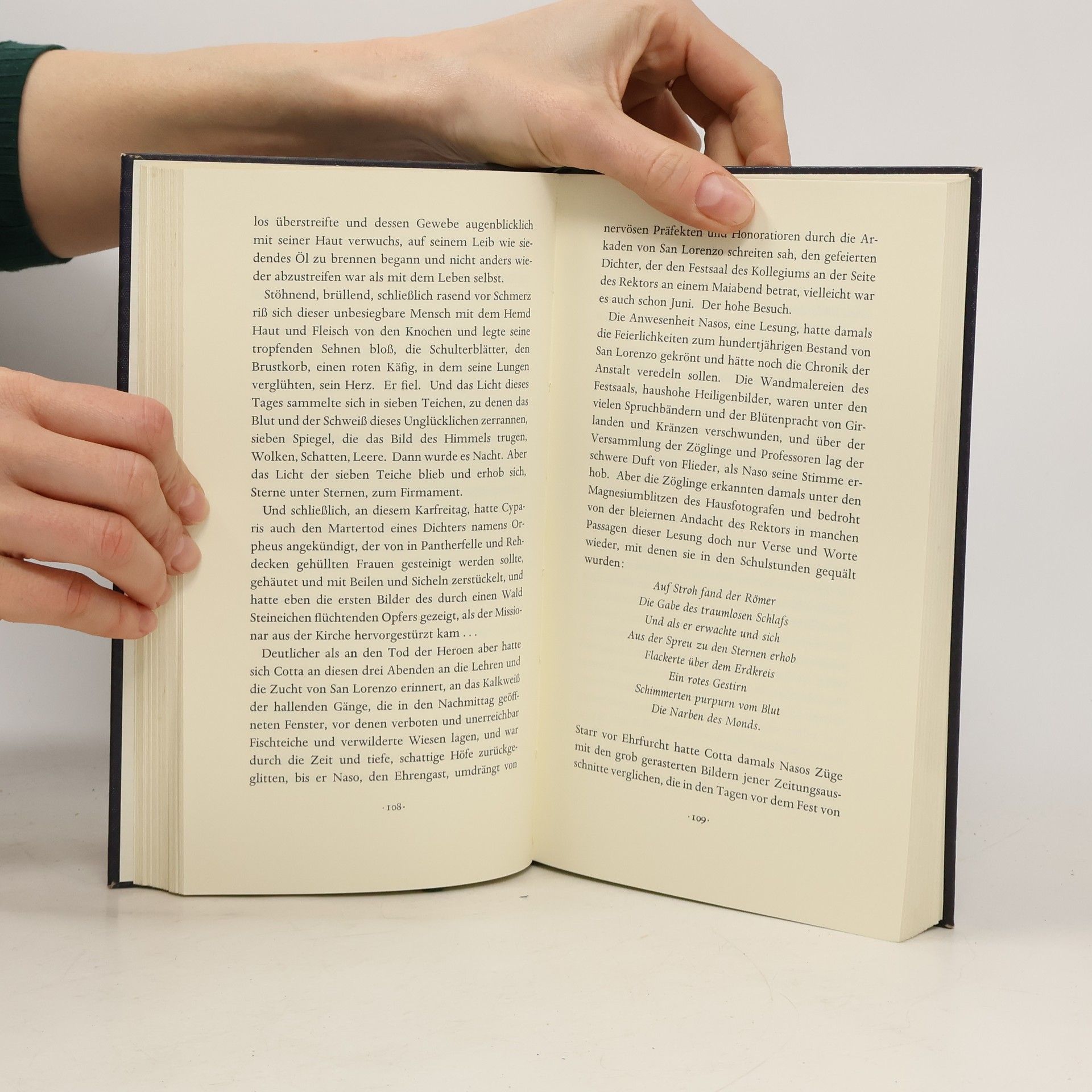 Venezianische Garten legen Phosphorbrände an die Fluchtwege der Katakomben, eine Stimme am Telefon spricht vom Zorn des Imperators, und Ovid, der unglücklichste Dichter der Antike, tritt zur Eröffnung eines Stadions vor einen Strauß Mikrophone und sagt: Bürger von Rom... Die letzte Welt hat ihren Ursprung im Feuer. Es ist eigentlich nur ein Zimmerbrand, der die Schreibstube einer römischen Villa verwüstet. Was dieses Feuer unvergeßlich macht, ist der Umstand, dass es von Ovid entfacht wurde: was da brennt, ist sein Hauptwerk, die Metamorphosen, eine grausame Enzyklopädie der antiken Verwandlungsmythen. Die letzte Welt ist ein utopischer Roman, in dem die Antike auf bedrohliche Weise mit einer unbekannten Zukunft zusammenschießt.