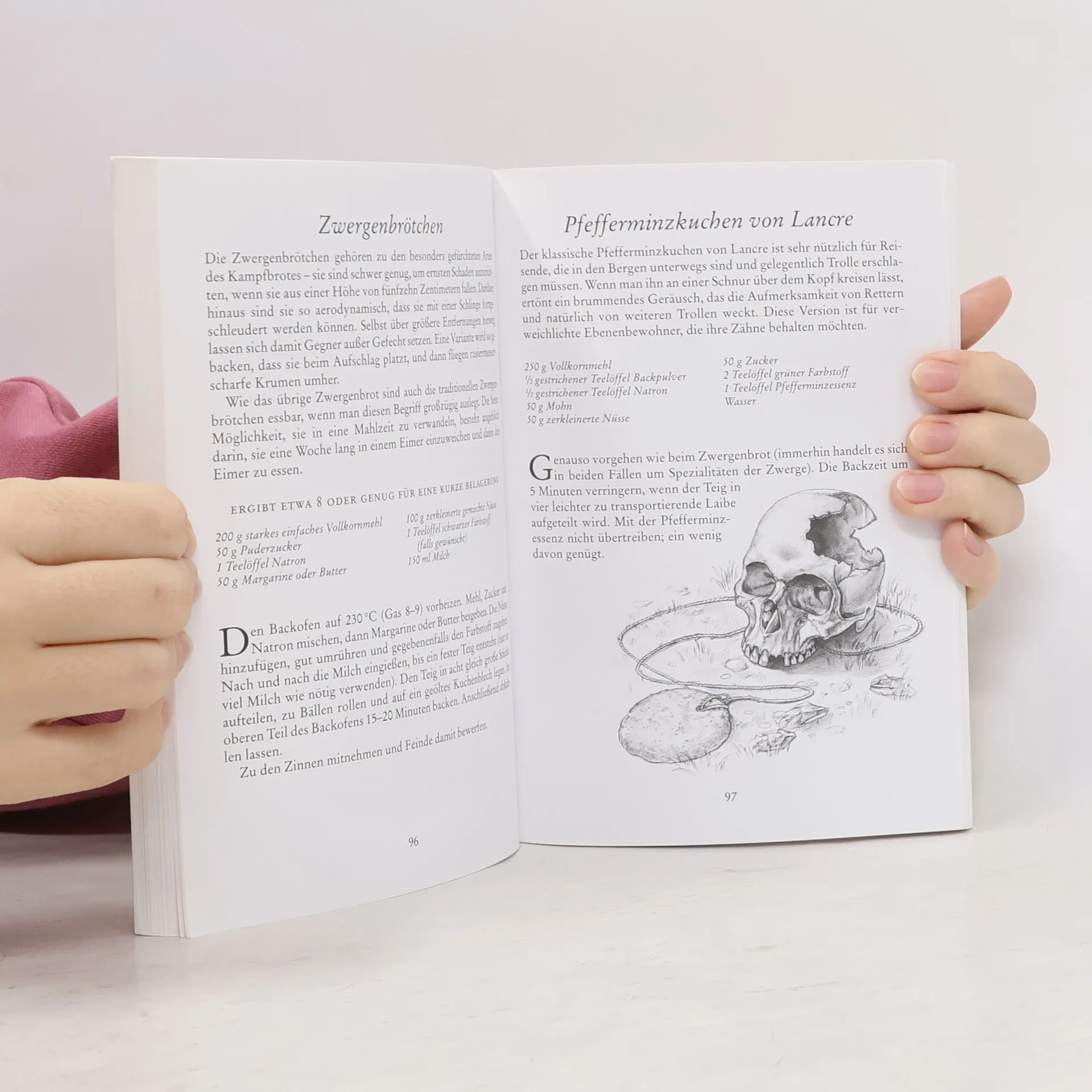 Ein Spaßkochbuch, vor allem für Anfänger der heiteren Kochkünste! Das ungewöhnlichste Kochbuch seit langer Zeit! Und mehr: Es enthält: ca. 50 Originalrezepte von der Scheibenwelt, dazu bedenkenswerte Weisheiten und gut gemeinte Ratschläge für junge Leute, die an der Schwelle des Abenteuers namens Ehe stehen; sowie Belehrungen über Etikette und viele andere hilfreiche Bemerkungen rund um das Essen und Verdauen.
