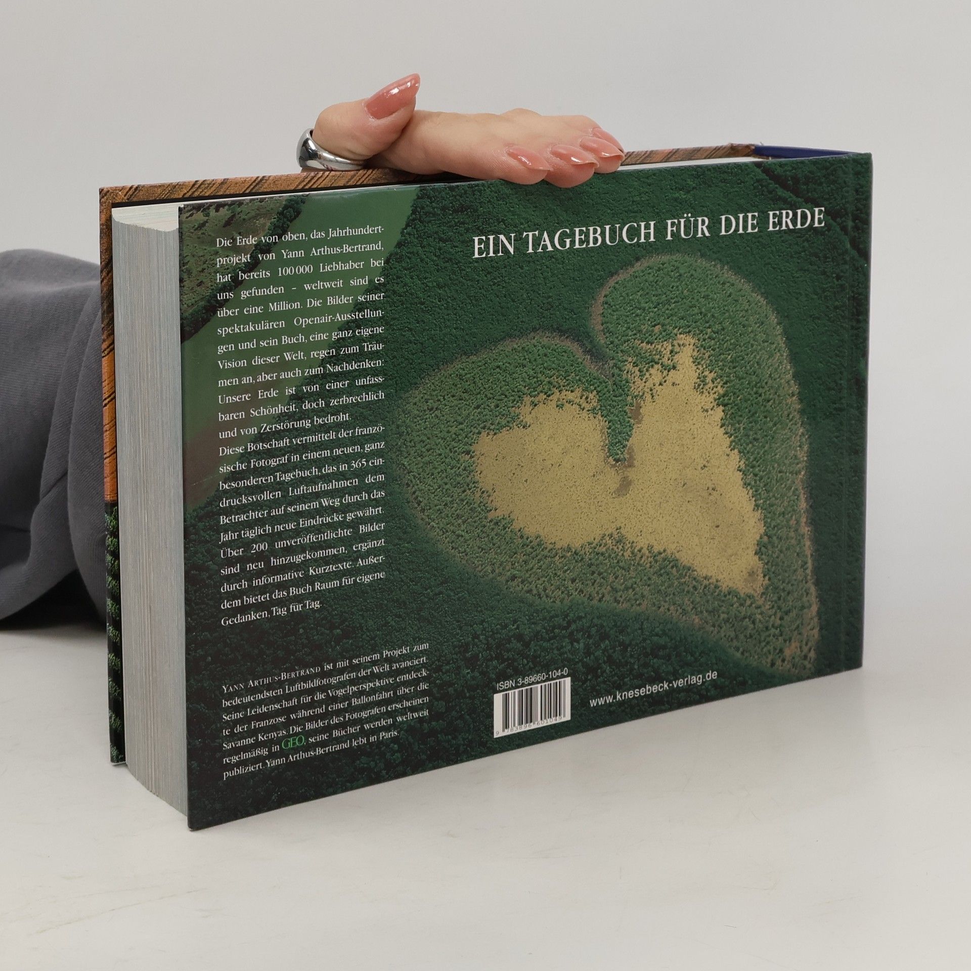 Tage, um über unsere Erde nachzudenken. Sie ist es wert, das wir jeden Tag etwas über sie hinzulernen. Der Fotograf Yann Arthus-Bertrand hat mit seinem Bildband "Die Erde von oben" Maßstäbe gesetzt. In Tausenden von Flugstunden hat er das wohl ehrgeizigste Unternehmen der Luftbildfotografie überhaupt verwirklicht: ein globales Porträt des Planeten Erde. Daran knüpft er jetzt mit einem "Tagebuch der Erde" an, für das er 365 seiner schönsten Fotografien ausgesucht hat.§Er zeigt in seinen Aufnahmen ungeahnte Muster, Farben und Strukturen, nie gesehene Formationen, die Natur- und Städtelandschaften, bunte Menschenmengen und weidende Tierherden darbieten.§Die Schönheit der Erde und die Sorge um die Umwelt: beides beschäftigt den Fotografen gleichermaßen, und er hat damit viele Menschen berührt. Zu jedem Bild gibt es einen informativen Text, der dem Leser jeden Tag einen anderen Aspekt unserer Welt nahe bringt. Ein fotografisches Fazit vom ebenso schönen wie zerbrechlichen Antlitz der Erde.