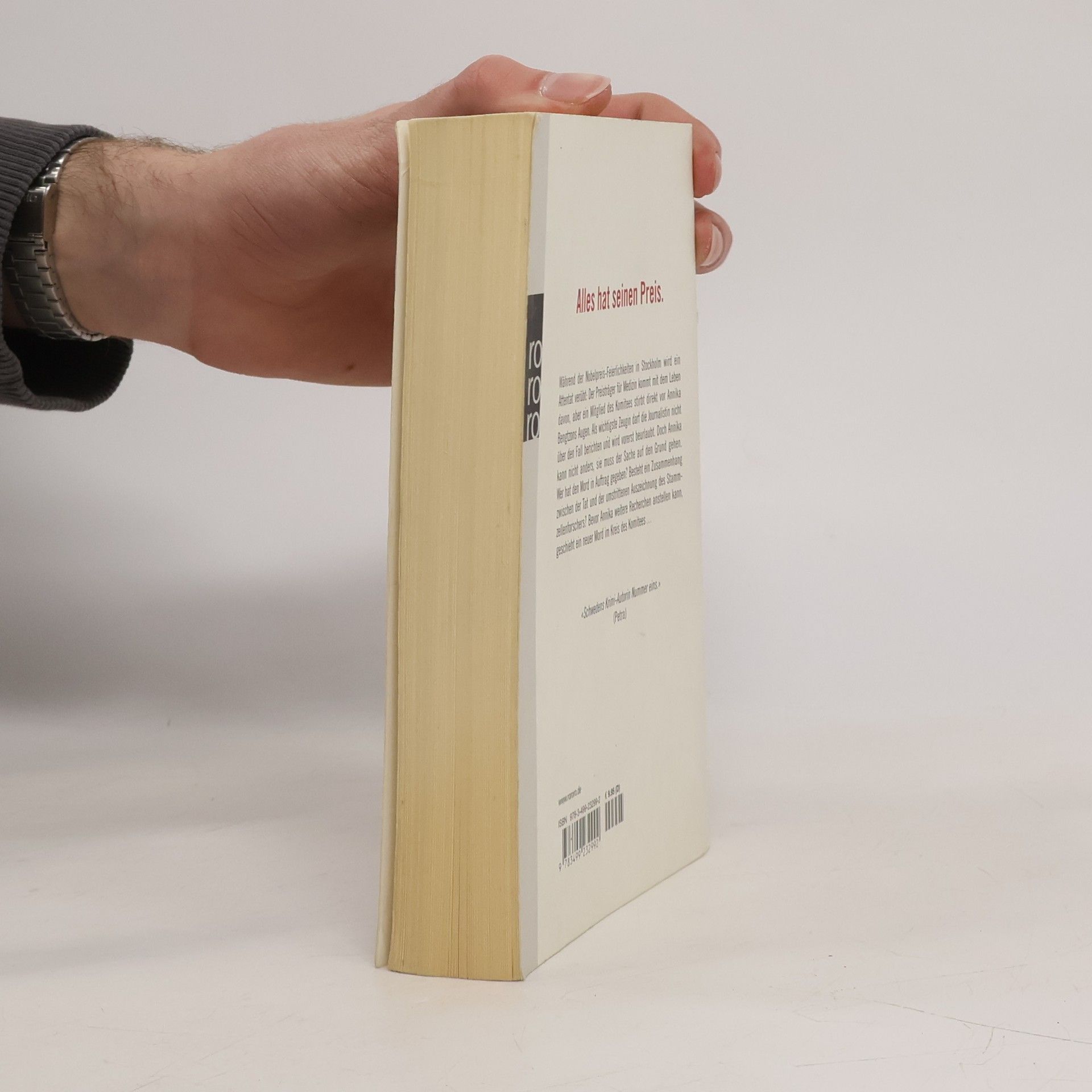 Alles hat seinen PreisWährend der Nobelpreis-Feierlichkeiten in Stockholm wird ein Attentat verübt: Der Preisträger für Medizin kommt mit dem Leben davon, aber ein Mitglied des Komitees stirbt direkt vor Annika Bengtzons Augen. Als wichtigste Zeugin darf die Journalistin nicht über den Fall berichten und wird vorerst beurlaubt. Doch Annika kann nicht anders, sie muss der Sache auf den Grund gehen. Wer hat den Mord in Auftrag gegeben? Besteht ein Zusammenhang zwischen der Tat und der umstrittenen Auszeichnung des Stammzellenforschers? Bevor Annika weitere Recherchen anstellen kann, geschieht ein neuer Mord im Kreis des Komitees…„Schwedens Krimi-Autorin Nummer eins.“ (Petra)