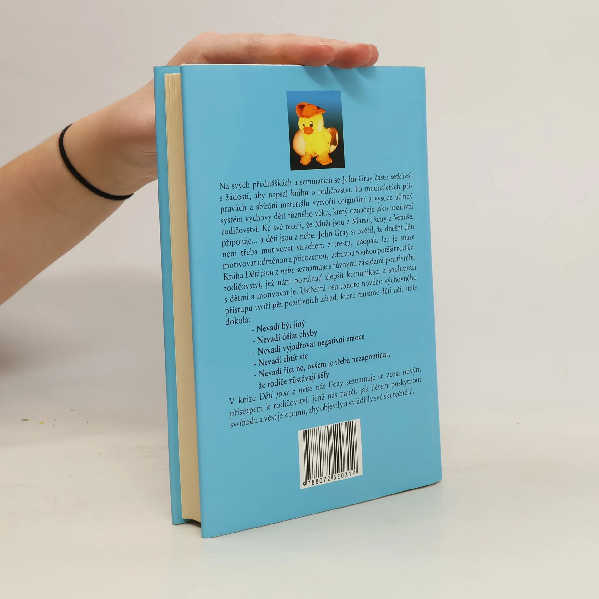 S radostí, láskou a porozuměním vychovejte sebevědomé, vstřícné a citlivé děti. Po mnohaletých přípravách vytvořil John Gray vysoce účinný systém výchovy dětí různého věku, který označuje jako pozitivní rodičovství. Ke své teorii, že muži jsou z Marsu, ženy z Venuše, připojuje: a děti jsou z nebe. John Gray dokázal, že dnešní děti není třeba motivovat strachem z trestu, naopak, snáze je lze motivovat odměnou a přirozenou, zdravou touhou potěšit rodiče. Ústřední osu tohoto nového přístupu tvoří pět pozitivních zásad, které musíme děti učit stále dokola: Nevadí být jiný. Nevadí dělat chyby. Nevadí vyjadřovat negativní emoce. Nevadí chtít víc. Nevadí říct ne, ovšem je třeba nezapomínat, že rodiče zůstávají šéfy. Poskytněte dětem svobodu a veďte je k tomu, aby objevily a vyjádřily své skutečné já! (zásady pozitivního rodičovství, vedoucí k výchově spolupracujících, sebevědomých a citlivých dětí)