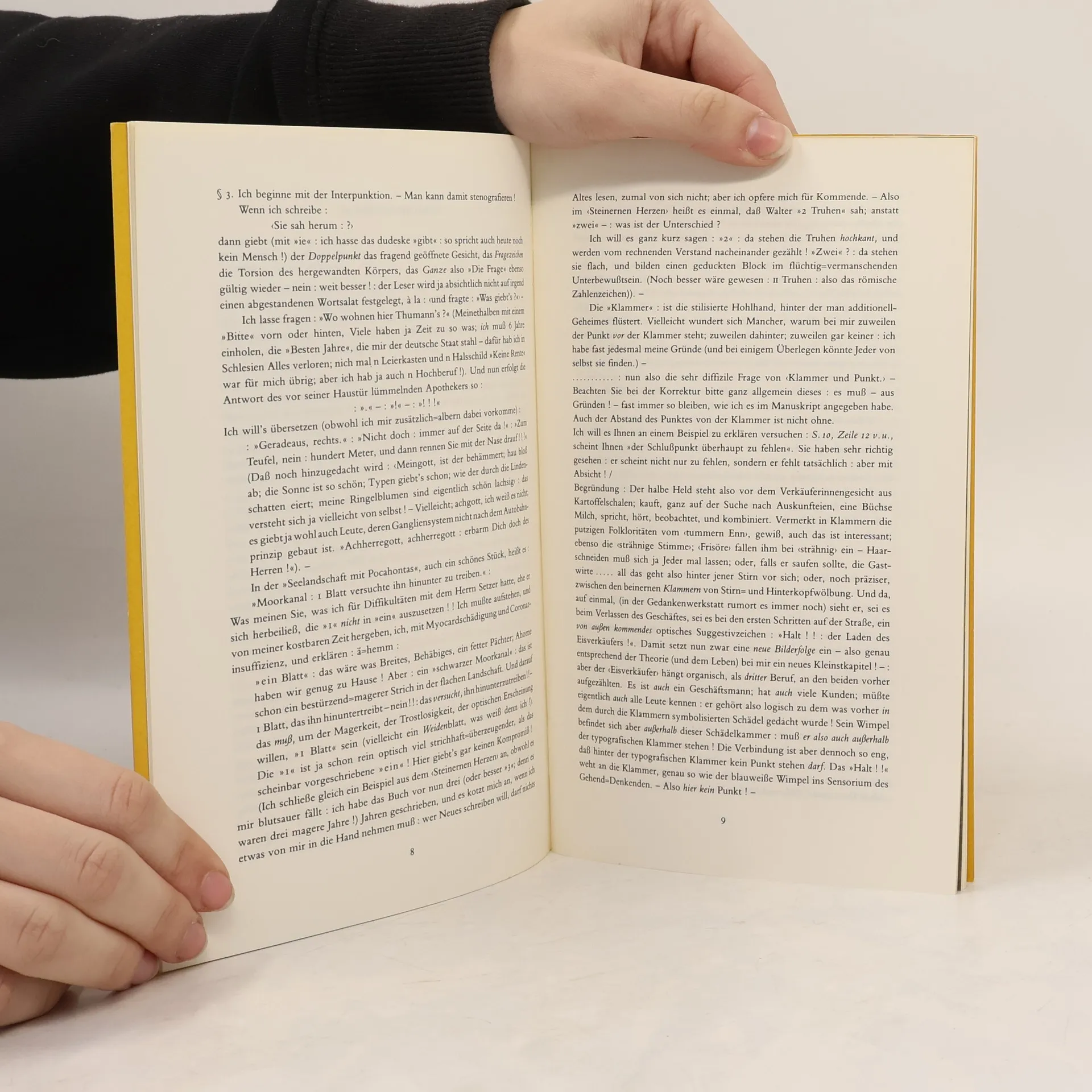 Walter Eggers, ein leidenschaftlicher Büchersammler und Kenner der hannoverschen Landesgeschichte, mietet sich in Ahlden bei der Familie Thumann ein, in der Hoffnung, seltene statistische Handbücher zu finden. Sein Vorhaben führt nicht nur zu einem Verhältnis mit Frieda Thumann, sondern auch zu dem Erfolg, die gesuchten Bücher zu entdecken. Gemeinsam mit Karl Thumann reist er nach Berlin, wo er bei Karls Freundin Line Hübner im Ostteil der Stadt wohnt. Diese Zeit ermöglicht es ihm, die Auswirkungen der deutschen Teilung zu beobachten. Nach seiner Rückkehr plant er, das Haus zu verlassen, doch der unerwartete Fund eines Goldmünzenschatzes eröffnet ihm neue Möglichkeiten für eine Zeit des gelehrten Müßiggangs, was ihn dazu bringt, vorerst zu bleiben. Georg Klein beschreibt in seinen Überlegungen, dass die Ostzone eines Tages gleichwertig neben der fantastischen Interzone von W. S. Burroughs stehen wird. In dieser Dämmerzone, in der Namen ihre feste Zuschreibung verlieren und neue Assoziationen hervorrufen, wird die Ostzone aufblühen. Klein weckt damit die Neugier, die Lektüre des historischen Romans von Arno Schmidt, der vor 46 Jahren veröffentlicht wurde, sofort zu beginnen.