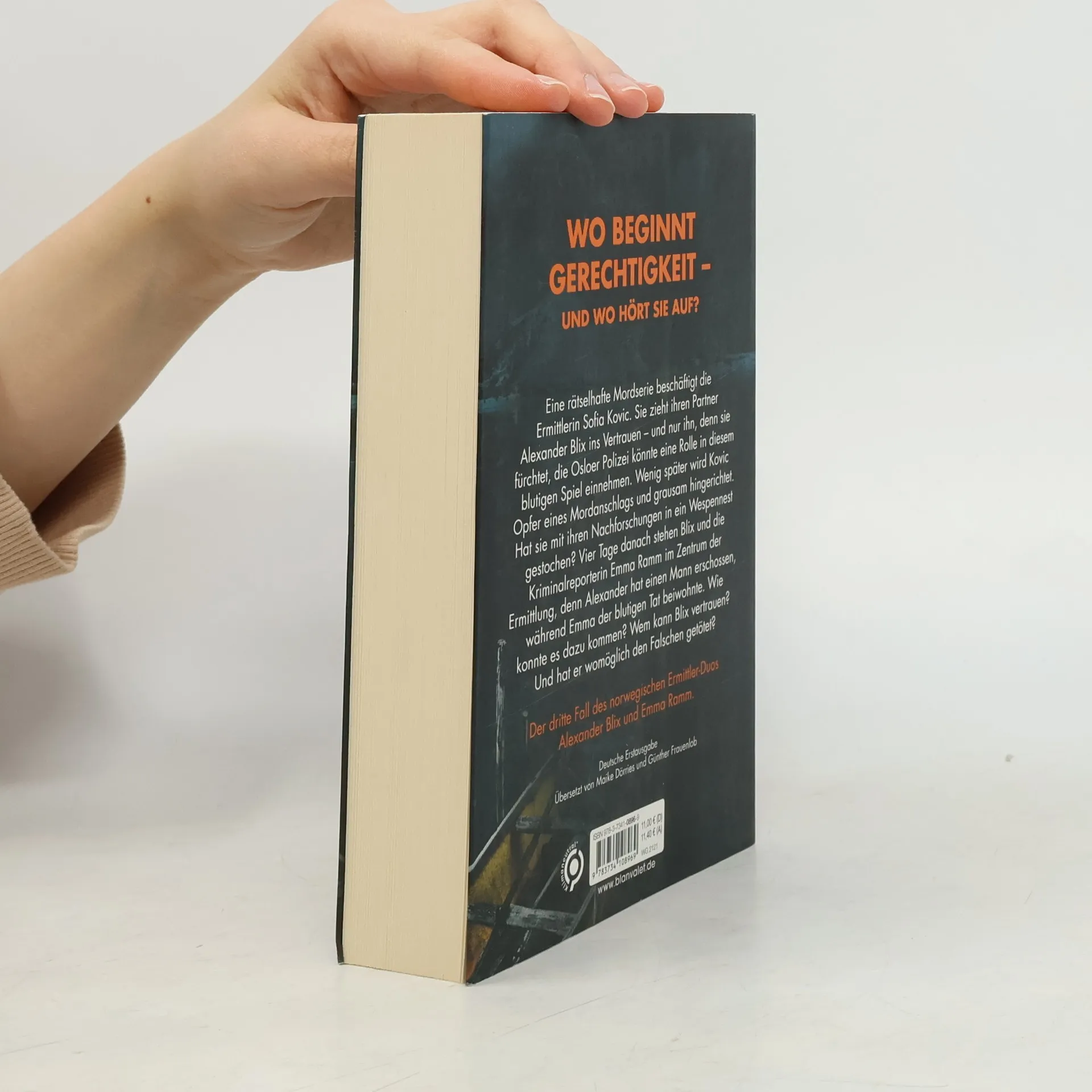 An Blix' Händen klebt Blut. Doch wo beginnt Gerechtigkeit – und wo hört sie auf? Der dritte Roman der internationalen Bestseller-Reihe aus Norwegen! Eine rätselhafte Mordserie beschäftigt die Ermittlerin Sofia Kovic. Sie zieht ihren Partner Alexander Blix ins Vertrauen – und nur ihn, denn sie fürchtet, die Osloer Polizei könnte eine Rolle in diesem blutigen Spiel einnehmen. Wenig später wird Kovic Opfer eines Mordanschlags und grausam hingerichtet. Hat sie mit ihren Nachforschungen in ein Wespennest gestochen? Vier Tage danach stehen Blix und die Kriminalreporterin Emma Ramm im Zentrum der Ermittlung, denn Alexander hat einen Mann erschossen, während Emma der blutigen Tat beiwohnte. Wie konnte es dazu kommen? Wem kann Blix vertrauen? Und hat er womöglich den Falschen getötet? Alle Bücher der Platz-1-Bestsellerserie aus Norwegen: BlutzahlBlutnebelBluttatBlutnachtBlutstunde
