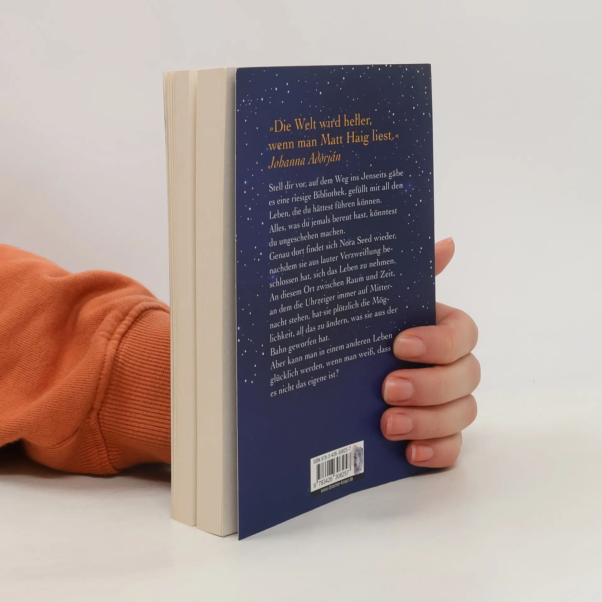Stell dir vor, auf dem Weg ins Jenseits gäbe es eine riesige Bibliothek, gefüllt mit all den Leben, die du hättest führen können. Alles, was du jemals bereut hast, könntest du ungeschehen machen. Genau dort findet sich Nora Seed wieder, nachdem sie aus lauter Verzweiflung beschlossen hat, sich das Leben zu nehmen. An diesem Ort zwischen Raum und Zeit, an dem die Uhrzeiger immer auf Mitternacht stehen, hat sie plötzlich die Möglichkeit, all das zu ändern, was sie aus der Bahn geworfen hat. Aber kann man in einem anderen Leben glücklich werden, wenn man weiß, dass es nicht das eigene ist? Matt Haigs zauberhafter Roman erzählt davon, dass uns selbst Entscheidungen, die wir später bereuen, zu den Menschen machen, die wir sind. »Die Mitternachtsbibliothek« ist eine Liebeserklärung an all unsere Eigenheiten und Besonderheiten, an das einzige Leben, das wir haben. Entdecken Sie auch die anderen Romane von Matt Haig bei Droemer: Der fürsorgliche Mr. Cave, Die Familie Radley, Für immer, euer Prince, Nachricht von Dad