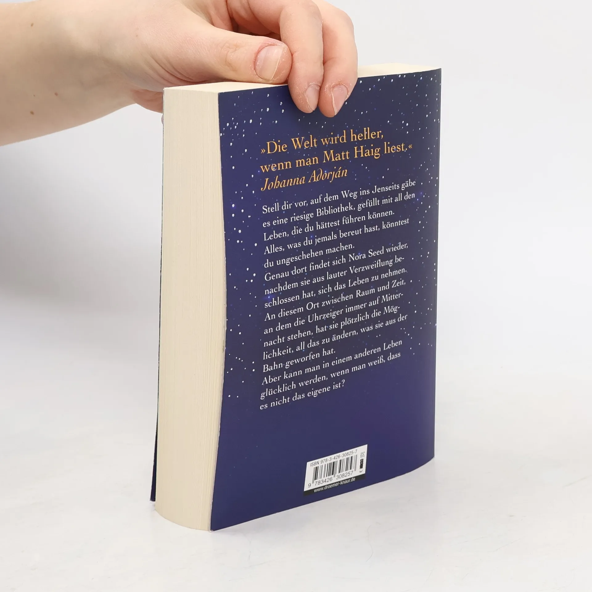 Stell dir vor, auf dem Weg ins Jenseits gäbe es eine riesige Bibliothek, gefüllt mit all den Leben, die du hättest führen können. Alles, was du jemals bereut hast, könntest du ungeschehen machen. Genau dort findet sich Nora Seed wieder, nachdem sie aus lauter Verzweiflung beschlossen hat, sich das Leben zu nehmen. An diesem Ort zwischen Raum und Zeit, an dem die Uhrzeiger immer auf Mitternacht stehen, hat sie plötzlich die Möglichkeit, all das zu ändern, was sie aus der Bahn geworfen hat. Aber kann man in einem anderen Leben glücklich werden, wenn man weiß, dass es nicht das eigene ist? Matt Haigs zauberhafter Roman erzählt davon, dass uns selbst Entscheidungen, die wir später bereuen, zu den Menschen machen, die wir sind. »Die Mitternachtsbibliothek« ist eine Liebeserklärung an all unsere Eigenheiten und Besonderheiten, an das einzige Leben, das wir haben. Entdecken Sie auch die anderen Romane von Matt Haig bei Droemer: Der fürsorgliche Mr. Cave, Die Familie Radley, Für immer, euer Prince, Nachricht von Dad