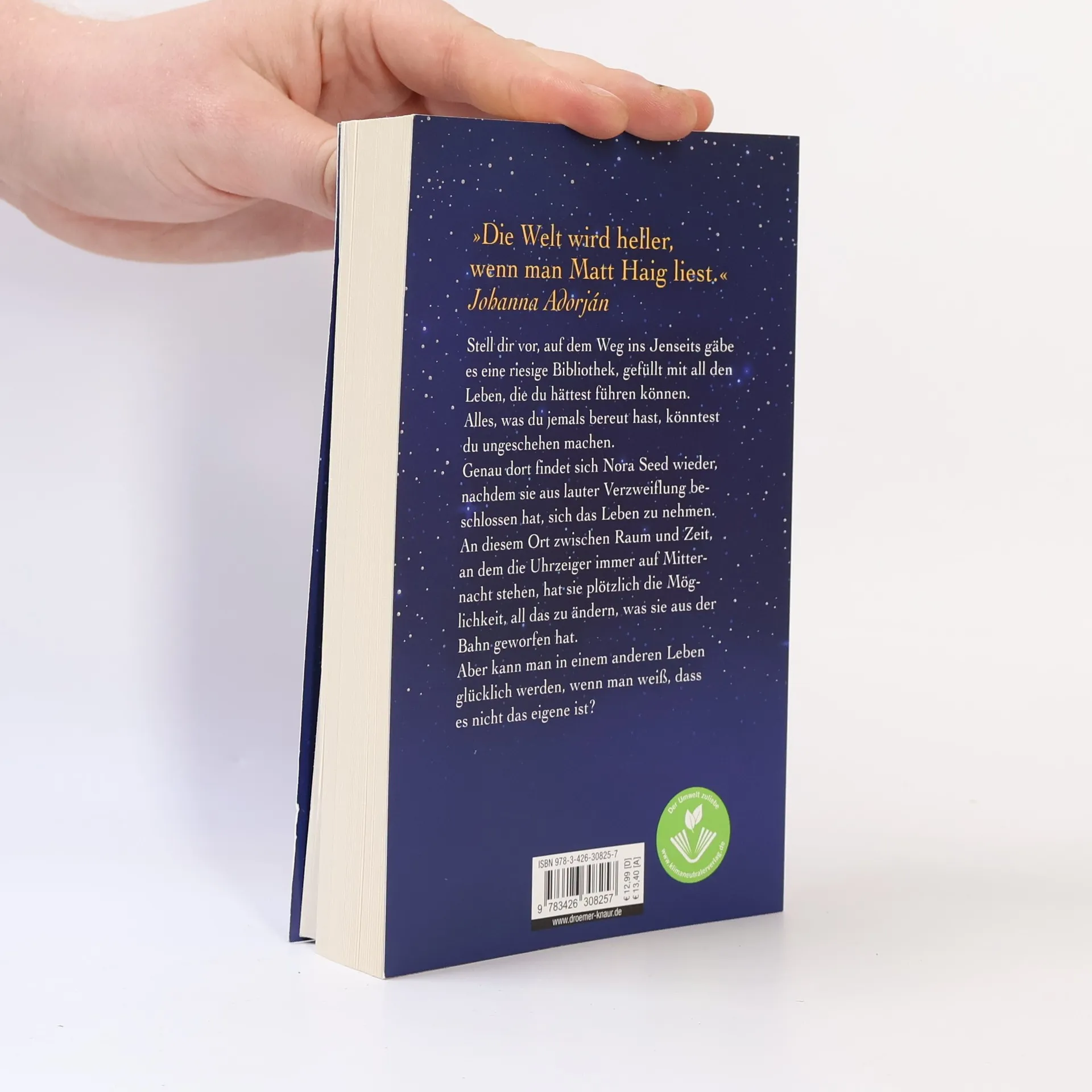 Stell dir vor, auf dem Weg ins Jenseits gäbe es eine riesige Bibliothek, gefüllt mit all den Leben, die du hättest führen können. Alles, was du jemals bereut hast, könntest du ungeschehen machen. Genau dort findet sich Nora Seed wieder, nachdem sie aus lauter Verzweiflung beschlossen hat, sich das Leben zu nehmen. An diesem Ort zwischen Raum und Zeit, an dem die Uhrzeiger immer auf Mitternacht stehen, hat sie plötzlich die Möglichkeit, all das zu ändern, was sie aus der Bahn geworfen hat. Aber kann man in einem anderen Leben glücklich werden, wenn man weiß, dass es nicht das eigene ist? Matt Haigs zauberhafter Roman erzählt davon, dass uns selbst Entscheidungen, die wir später bereuen, zu den Menschen machen, die wir sind. »Die Mitternachtsbibliothek« ist eine Liebeserklärung an all unsere Eigenheiten und Besonderheiten, an das einzige Leben, das wir haben.  Entdecken Sie auch die anderen Romane von Matt Haig bei Droemer: Der fürsorgliche Mr. Cave, Die Familie Radley, Für immer, euer Prince, Nachricht von Dad
