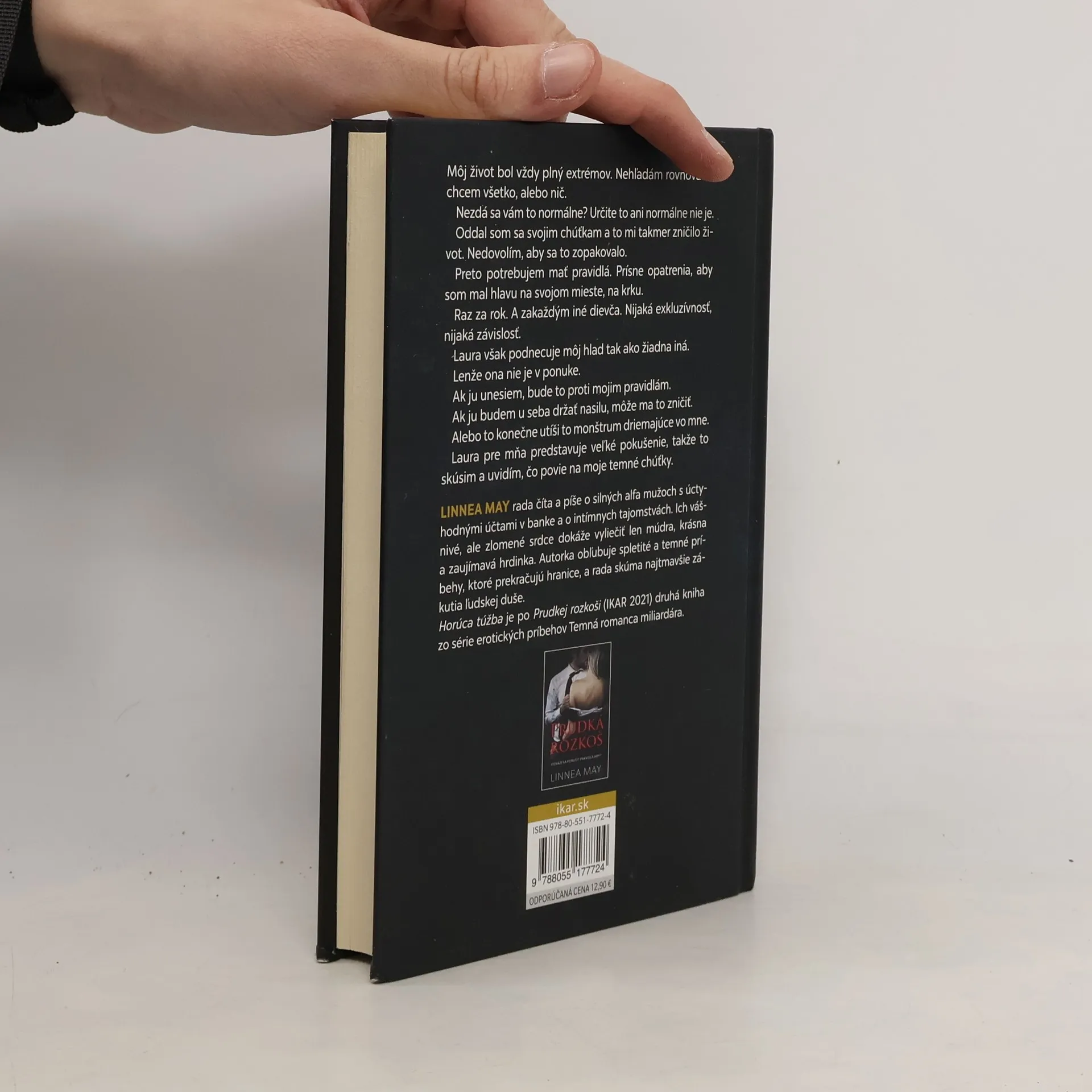 Môj život bol vždy plný extrémov. Nehľadám rovnováhu, chcem všetko, alebo nič. Nezdá sa vám to normálne? Určite to ani normálne nie je. Oddal som sa svojim chúťkam a to mi takmer zničilo život. Nedovolím, aby sa to zopakovalo. Preto potrebujem mať pravidlá. Prísne opatrenia, aby som mal hlavu na svojom mieste, na krku. Raz za rok. A zakaždým iné dievča. Nijaká exkluzívnosť, nijaká závislosť. Laura však podnecuje môj hlad tak ako žiadna iná. Lenže ona nie je v ponuke. Ak ju unesiem, bude to proti mojim pravidlám. Ak ju budem u seba držať nasilu, môže ma to zničiť. Alebo to konečne utíši to monštrum driemajúce vo mne. Laura pre mňa predstavuje veľké pokušenie, takže to skúsim a uvidím, čo povie na moje temné chúťky.