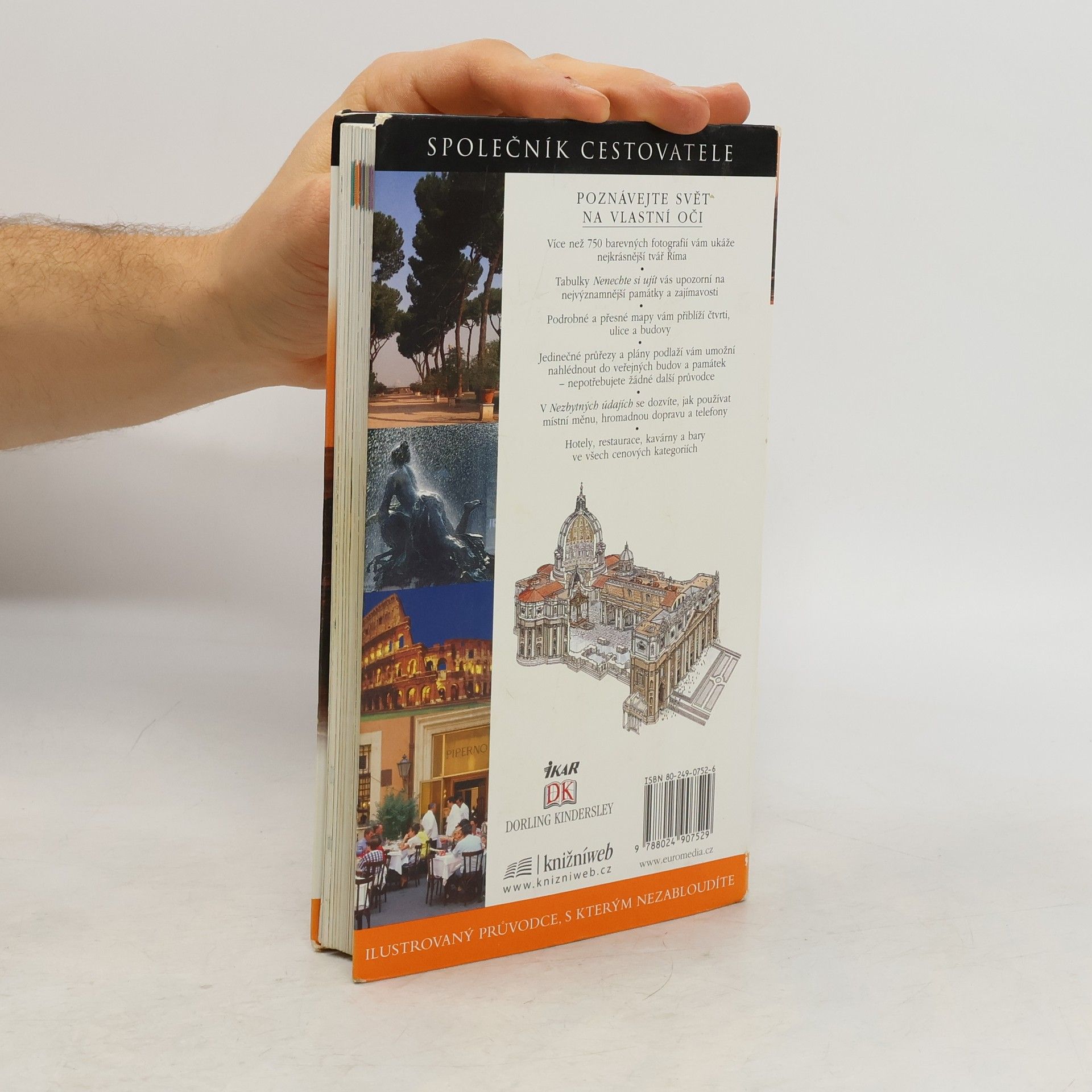 Společník cestovetele vám umožní co nejlépe využít pobyt v Římě s minimálními problémy. Poznávejte svět na vlastní oči. Více než 750 barevných fotografií vám ukáže nejkrásnější tvář Říma. Upozorní vás na nejvýznamnější památky a zajímavosti. Podrobné a přesné mapy vám přiblíží čtvrti, ulice a budovy. Jedinečné průřezy a plány podlaží vám umožní nahlédnout do veřejných budov a památek - nepotřebujete žádné další průvodce. Dozvíte se, jak používat místní měnu, hromadnou dopravu a telefony. Hotely, restaurace, kavárny a bary ve všech cenových kategoriích.
