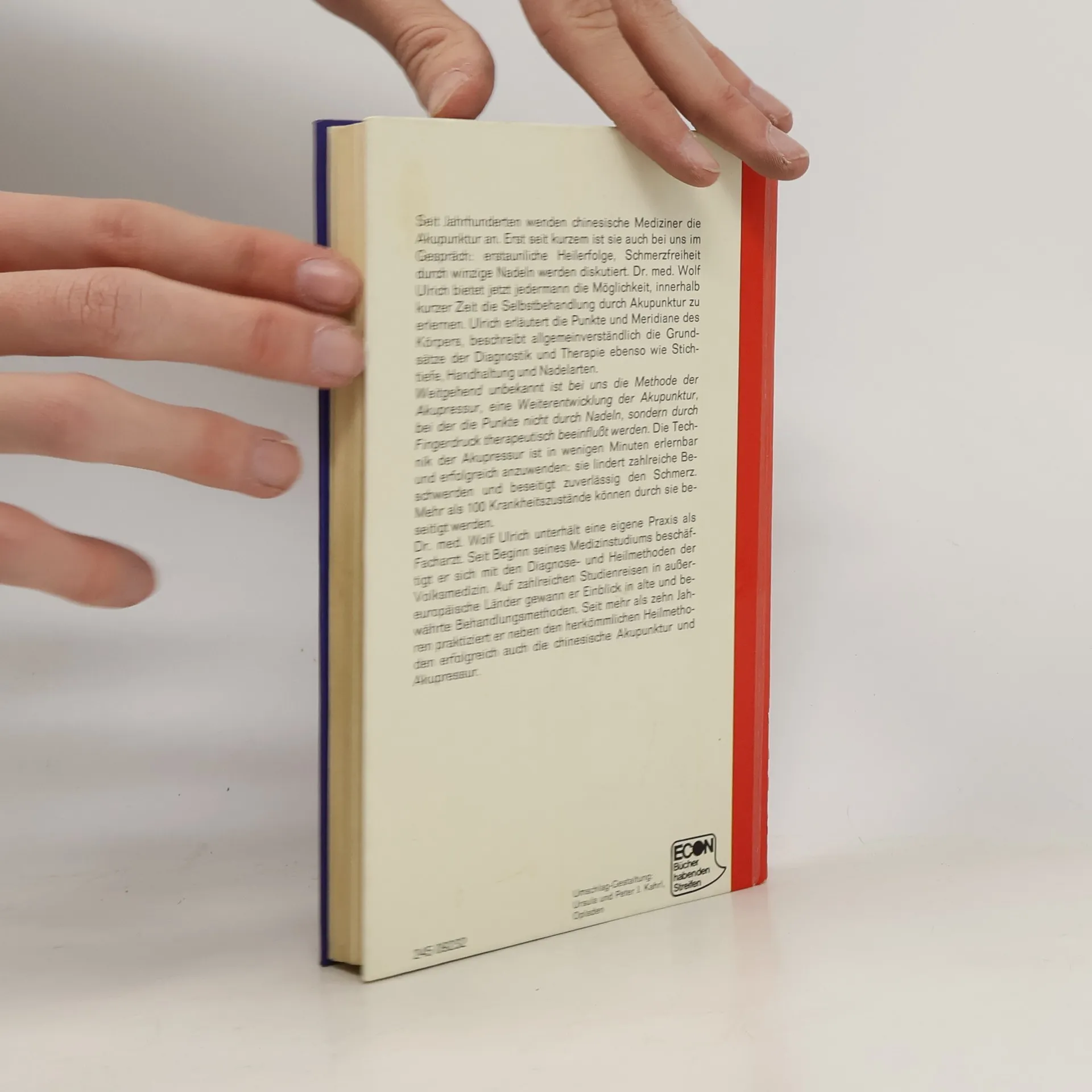 Seit Jahrhunderten wenden chinesische Mediziner die Akupunktur an. Erst seit kurzem ist sie auch bei uns im Gespräch; erstaunliche Heilerfolge: Schmerzfreiheit durch winzige Nadeln werden diskutiert. Dr. med. Wolf Ulrich bietet jetzt jedermann die Möglichkeit innerhalb kurzer Zeit die Selbstbehandlung durch Akupunktur zu erlernen. Ulrich erläutert die Punkte und Meridiane des Körpers, beschreibt allgemeinverständlich die Grundsätze der Diagnostik und Therapie ebenso wie Stichtiefe, Handhaltung und Nadelarten. -- Weitgehend unbekannt ist bei uns die Methode der Akupressur, eine Weiterentwicklung der Akupunktur, bei der die Punkte nicht durch Nadeln, sondern durch Fingerdruck therapeutisch beeinflusst werden. Die Technik der Akupressur ist in wenigen Minuten erlernbar und erfolgreich anzuwenden: sie lindert zahlreiche Beschwerden und beseitigt zuverlässig den Schmerz. Mehr als 100 Krankheitszustände können durch sie beseitigt werden.