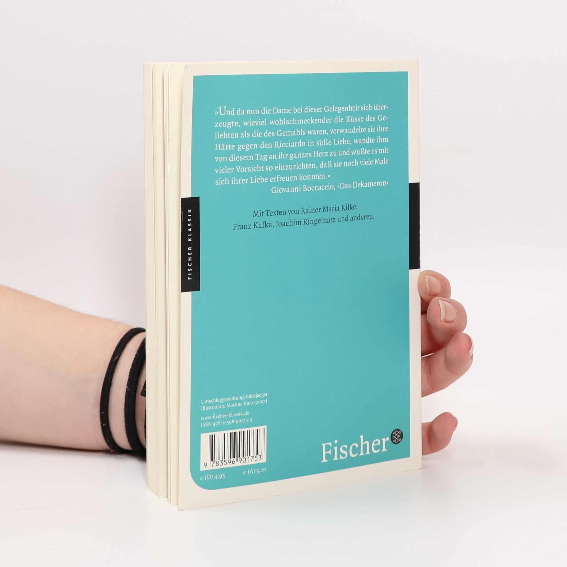 'Und da nun die Dame bei dieser Gelegenheit sich überzeugte, wieviel wohlschmeckender die Küsse des Geliebten als die des Gemahls waren, verwandelte sie ihre Härte gegen den Ricciardo in süße Liebe, wandte ihm von diesem Tag an ihr ganzes Herz zu und wußte es mit vieler Vorsicht so einzurichten, daß sie noch viele Male sich ihrer Liebe erfreuen konnten.' Giovanni Boccaccio, ›Das Dekameron‹ Mit Texten von Rainer Maria Rilke, Franz Kafka, Joachim Ringelnatz und anderen.