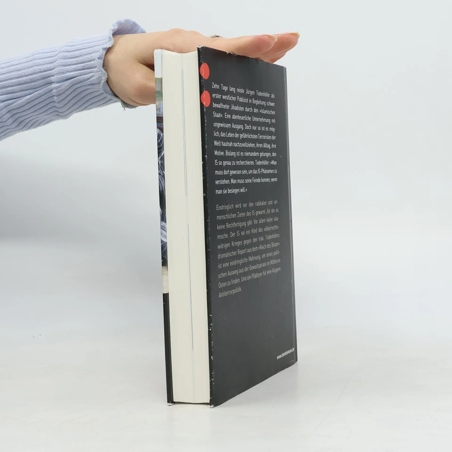Jürgen Todenhöfers Report über den IS-Terror Im Sommer 2014 führte Jürgen Todenhöfer mehrere Monate lang Gespräche mit deutschen Islamisten (via Skype), die sich dem IS-Staat angeschlossen haben. Die Erkenntnisse, die er in diesen Gesprächen gewann, sind mehr als erschreckend und enthüllen die mörderischen Absichten des sogenannten Kalifats, das einen weltweiten Gottesstaat errichten will und dabei auch vor Massenmorden nicht zurückschreckt, selbst unter Muslimen. Nach der Erweiterung Ihres Staates im Nahen Osten, bei der sie die Nachbarstaaten unterwerfen wollen, haben sie Europa und den Westen im Visier. Im November 2014 fuhr er als bislang weltweit einziger westlicher Journalist in das Zentrum des IS-Staats, nach Mossul, hielt sich dort 10 Tage lang auf und führte weitere Interviews. In seinem Buch beschreibt er eindringlich seine Erlebnisse vor Ort. Ausstattung: 24 Seiten farbiger Bildteil
