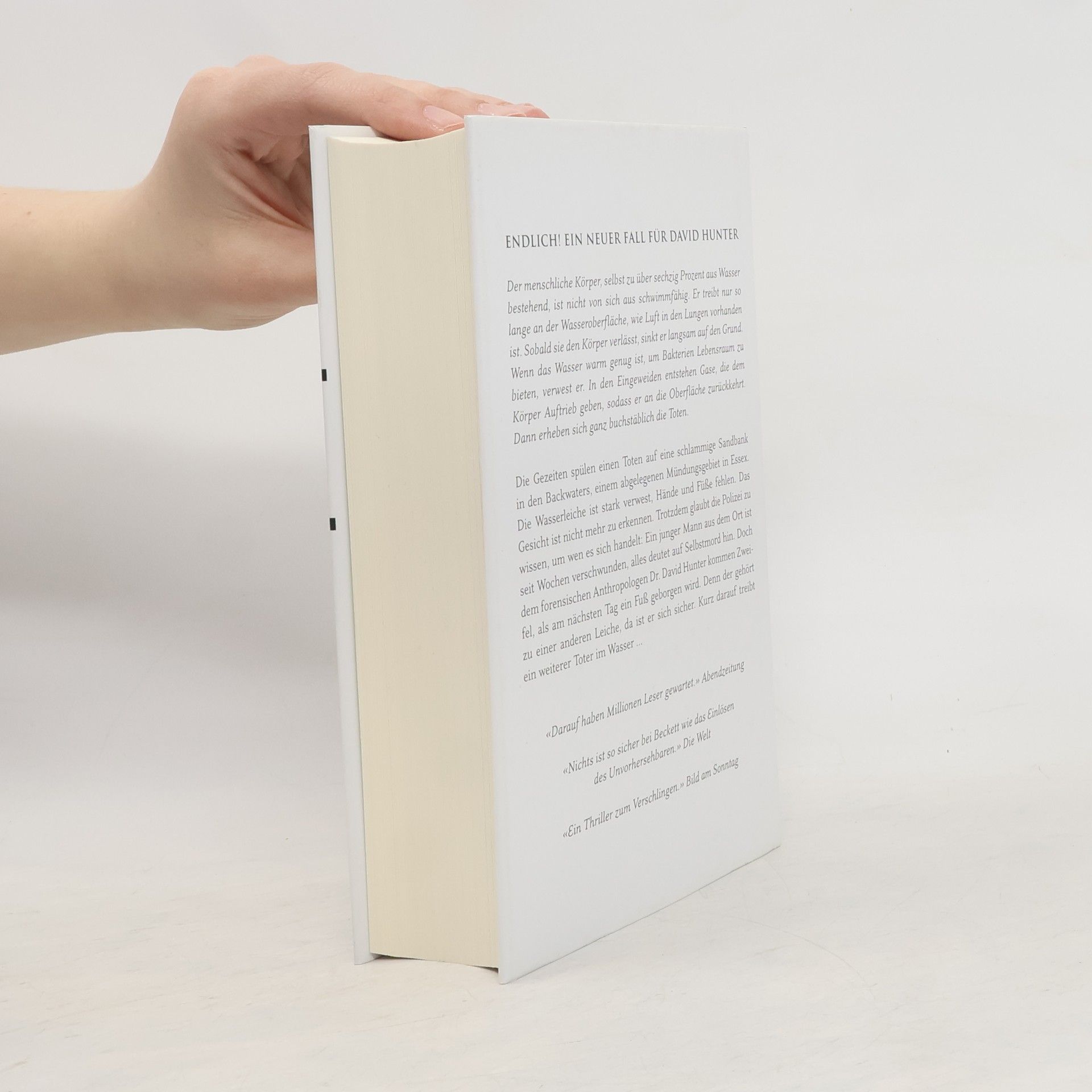 Sein fünfter Fall führt den forensischen Anthropologen David Hunter in die Backwaters, ein unwirtliches Mündungsgebiet in Essex, wo die Grenzen zwischen Land und Wasser verschwimmen. Die Wasserleiche ist stark verwest, Hände und Füße fehlen - und als am nächsten Tag ein Fuß geborgen wird, gehört dieser zu einer anderen Leiche. Doch die wahren Gefahren lauern nicht im tiefen Wasser, sondern dort, wo sie Hunter am wenigsten erwartet