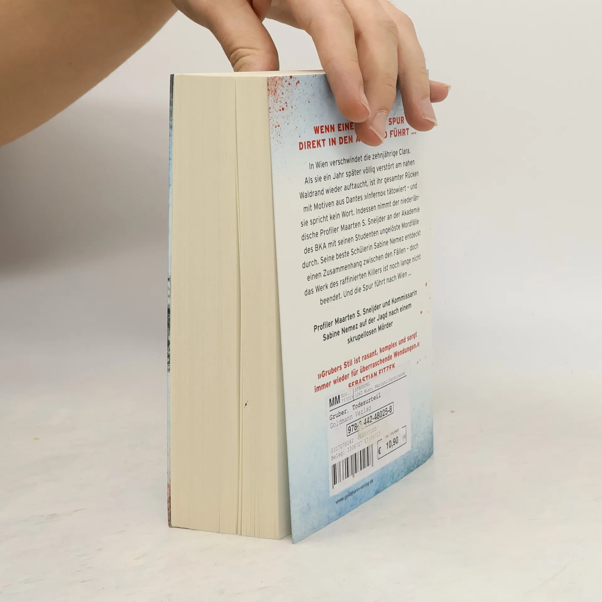 Sneijder und Nemez ermitteln wieder. In Wien verschwindet die zehnjährige Clara. Ein Jahr später taucht sie völlig verstört am nahen Waldrand wieder auf. Ihr gesamter Rücken ist mit Motiven aus Dantes „Inferno“ tätowiert – und sie spricht kein Wort. Indessen nimmt der niederländische Profiler Maarten S. Sneijder an der Akademie des BKA für hochbegabten Nachwuchs mit seinen Studenten ungelöste Mordfälle durch. Seine beste Schülerin Sabine Nemez entdeckt einen Zusammenhang zwischen mehreren Fällen – aber das Werk des raffinierten Killers ist noch lange nicht beendet. Seine Spur führt nach Wien – wo Clara die einzige ist, die den Mörder je zu Gesicht bekommen hat … Der zweite Fall für Sneijder und Nemez.