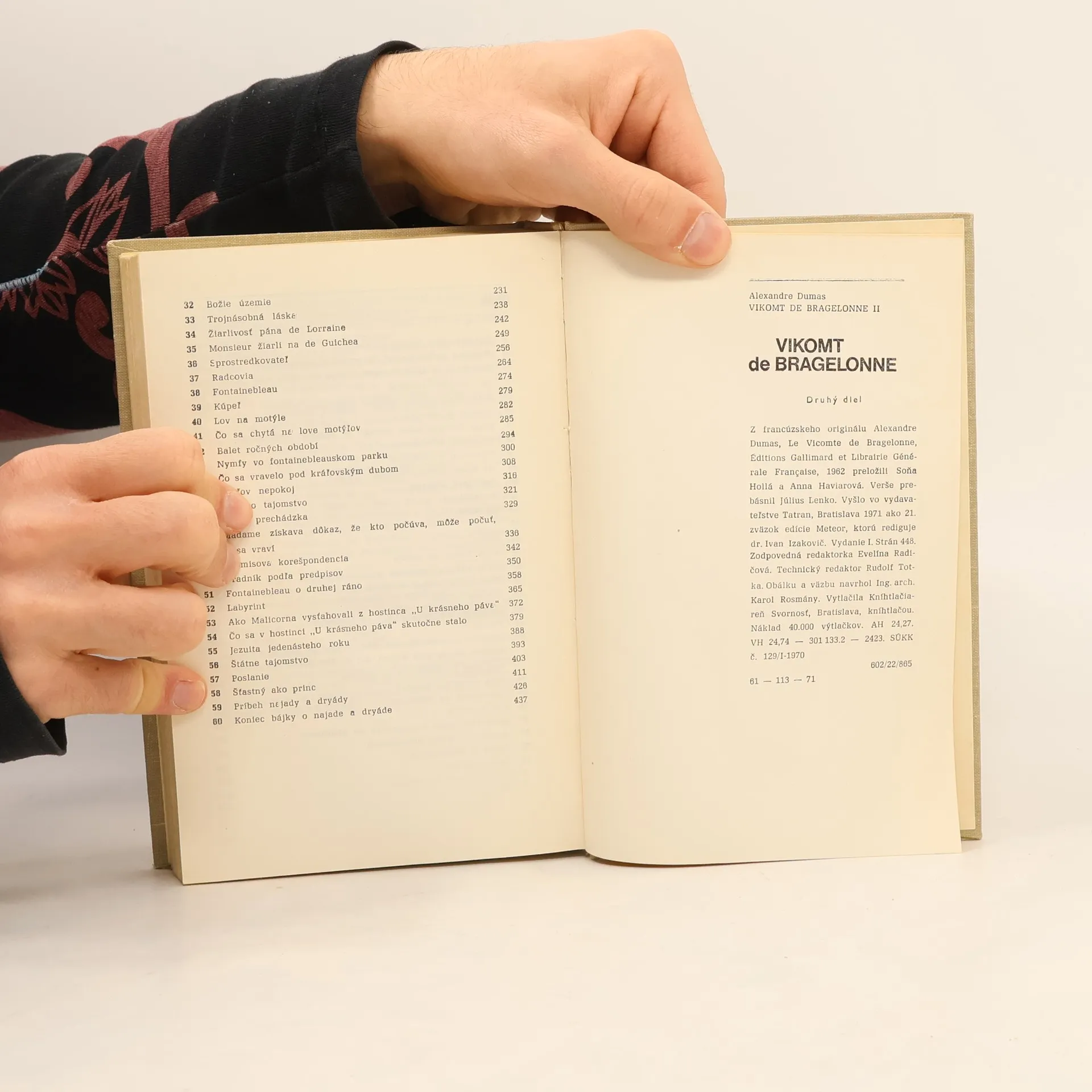 Sledujúc životné osudy mladého vikomta de Bragelonne, syna starého, dobre známeho Athosa, stretávame sa opäť aj s ďalšími hrdinami Troch mušketierov, s Porthosom, Aramisom a najmä s d’Artagnanom. Sú o tridsať rokov starší, no svojimi vlastnosťami, hrdinstvom, odvahou, statočnosťou, ktorýminás nadchýnali v prvých zväzkoch svojich príbehov, vedia nás upútať aj v rokoch, keď sa pomaly blíži súmrak ich života. Verše preložil Július Lenko
