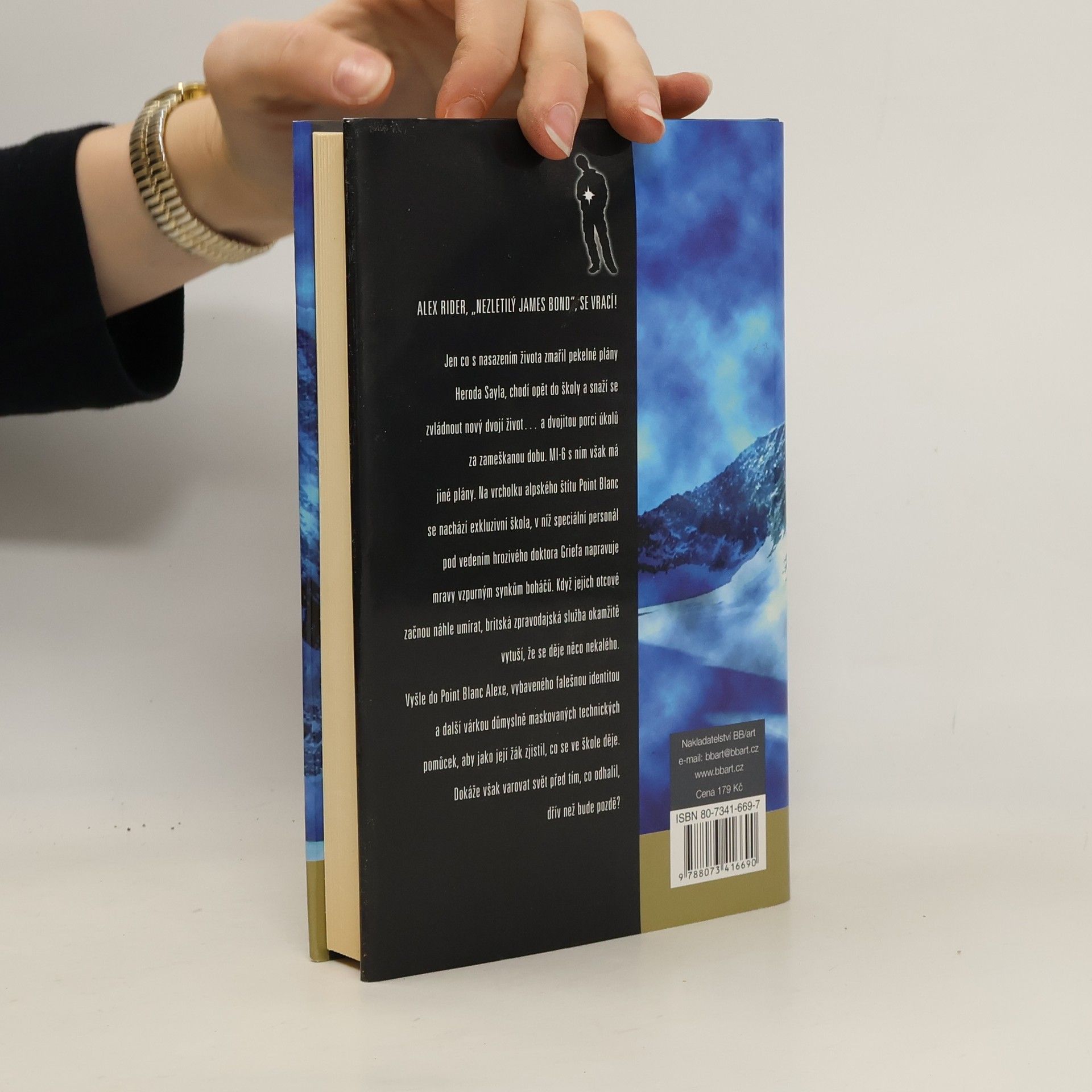 Druhá kniha série s chlapeckým hrdinou Alexem. Jen co s nasazením života zmařil pekelné plány Heroda Sayla, chodí opět do školy a snaží se dohnat zmeškané úkoly. MI-6 s ním však má jiné plány. Na vrcholku alpského štítu Point Blanc se nachází exkluzivní škola, v níž speciální personál pod vedením hrozivého doktora Griefa napravuje mravy vzpurným synkům boháčů. Když jejich otcové začnou náhle umírat, britská zpravodajská služba vytuší, že se děje něco nekalého.Vyšle tedy do Point Blanc Alexe, aby jako její žák zjistil, co se ve škole děje...