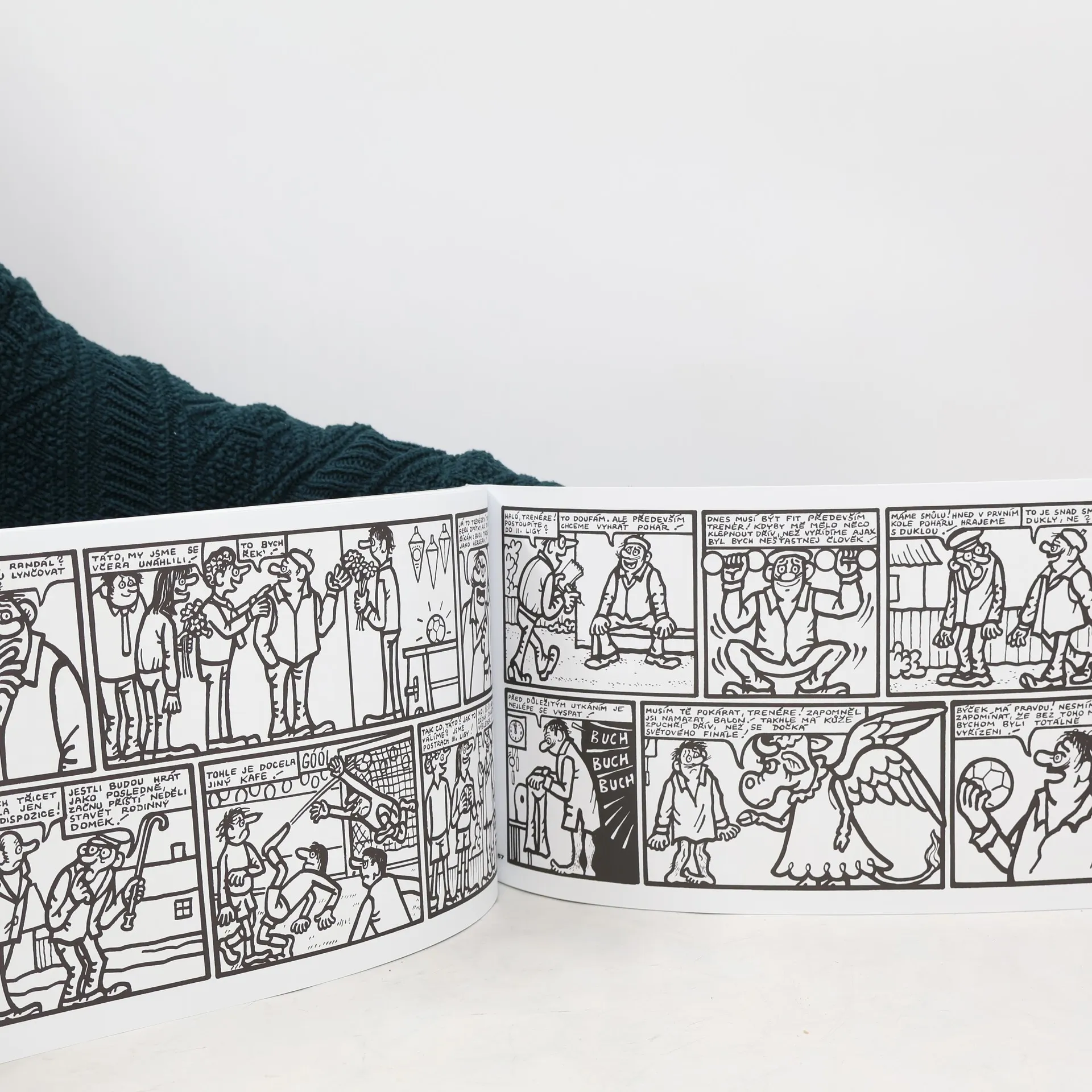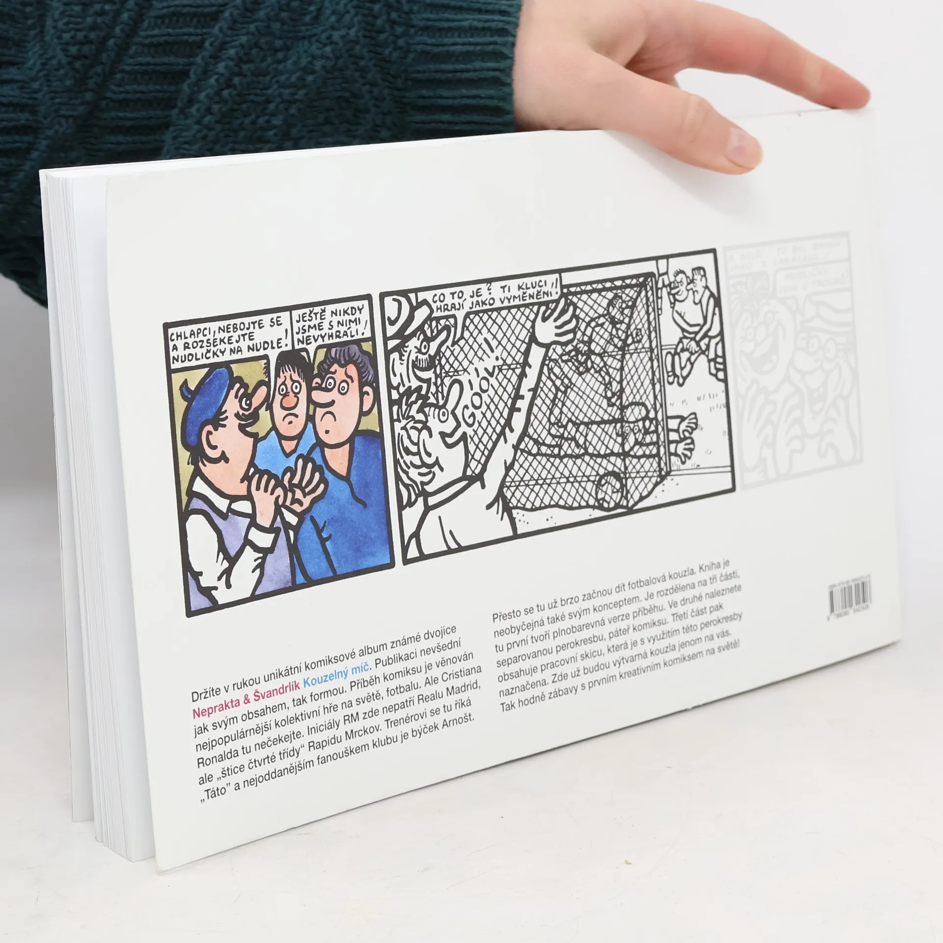 Komiks autorů Jiřího Wintera – Neprakty a Miloslava Švandrlíka, dvou velkých postav československého výtvarného umění a literatury, v nevšední – kreativní podobě. Příběh o lásce k fotbalu, kdy trenér vlastnoručně ušije pro svůj tým “kouzelný” míč z kůže býčka Arnošta, věrného fanouška klubu Rapid Mrckov, “štiky čtvrté třídy”. Ten je odveden na jatka poté, co obrečí další prohru v řadě, protože borci nejsou ochotni trénovat – do páté třídy přeci již padnout nemohou… Příběh o tom, co vše je člověk ochoten udělat pro slávu svého klubu a také o tom, že nakonec je to stejně vždy jenom o poctivé práci a fotbalové dřině. Kreativní podoba knihy dává možnost čtenáři nejen přečíst celobarevný příběh a uložit knihu do knihovny, ale vyzkoušet si na vlastní kůži díky černobílé verzi a pracovní skice, jak složitě takový komiks vzniká a co všechno jeho tvorba obnáší. V humorném příběhu se objeví slavná jména československého i světového fotbalu 70. let minulého století (Josef Masopust, Ivo Viktor, Zdeněk Nehoda, Pelé, Gerd Müller, Helenio Herrera ad.). Rapid Mrckov díky svému Kouzelnému míči změří své síly s pražskými kluby Spartou, Slavií, Duklou, Bohemians a Viktoria Žižkov, do Mrckova je “fotbalovou sekcí” poslán prověřit kvality zázračného týmu Baník Ostrava.