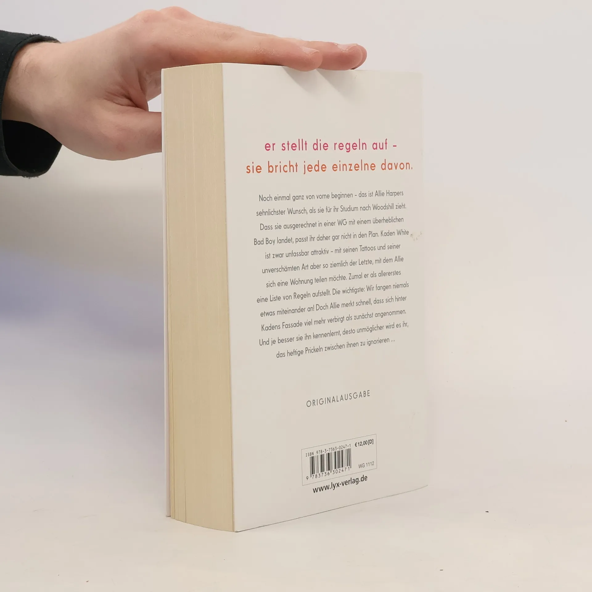 Er stellt die Regeln auf - sie bricht jede einzelne davon. Noch einmal ganz von vorne beginnen - das ist Allie Harpers sehnlichster Wunsch, als sie für ihr Studium nach Woodshill zieht. Dass sie ausgerechnet in einer WG mit einem überheblichen Bad Boy landet, passt ihr daher gar nicht in den Plan. Kaden White ist zwar unfassbar attraktiv - mit seinen Tattoos und seiner unverschämten Art aber so ziemlich der Letzte, mit dem Allie sich eine Wohnung teilen möchte. Zumal er als allererstes eine Liste von Regeln aufstellt. Die wichtigste: Wir fangen niemals etwas miteinander an! Doch Allie merkt schnell, dass sich hinter Kadens Fassade viel mehr verbirgt als zunächst angenommen. Und je besser sie ihn kennenlernt, desto unmöglicher wird es ihr, das heftige Prickeln zwischen ihnen zu ignorieren ... „Lache, weine und verliebe dich. Mona Kasten hat ein Buch geschrieben, das man nicht aus der Hand legen kann!“ ANNA TODD über „Begin Again“ Der Auftaktband der „Again“-Reihe von Platz-1-SPIEGEL-Bestseller-Autorin Mona Kasten