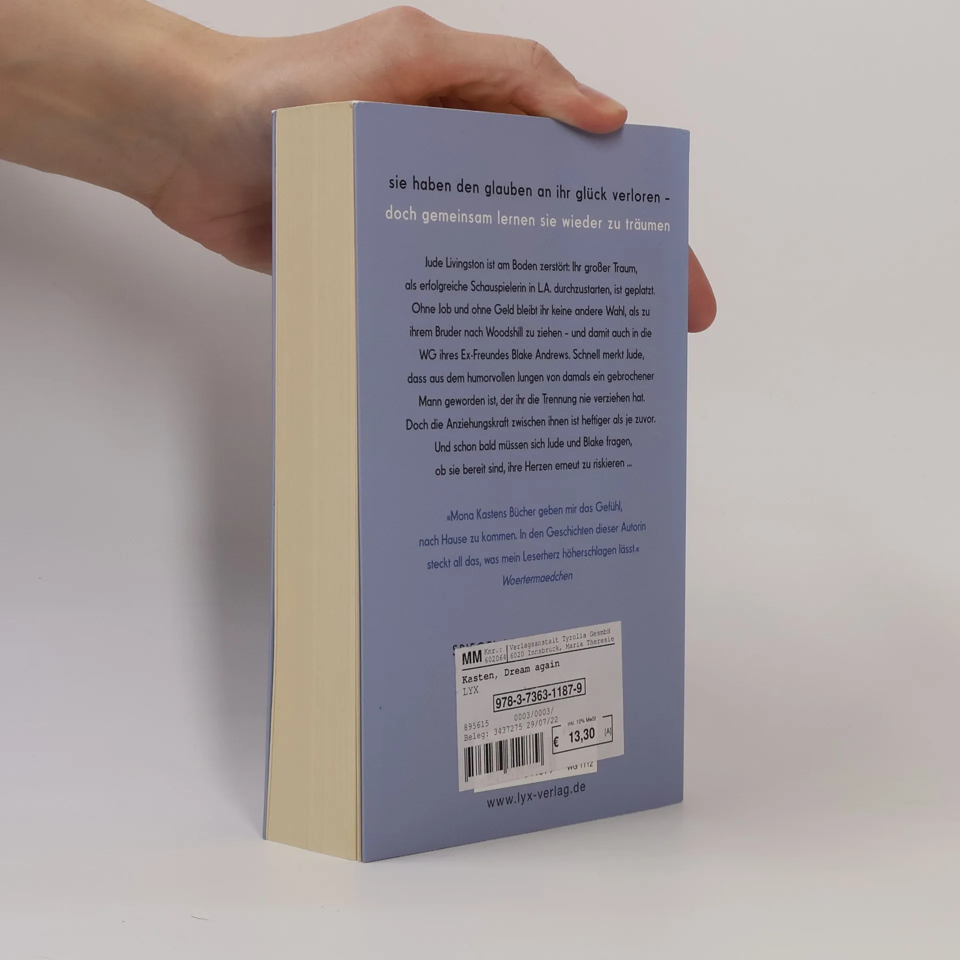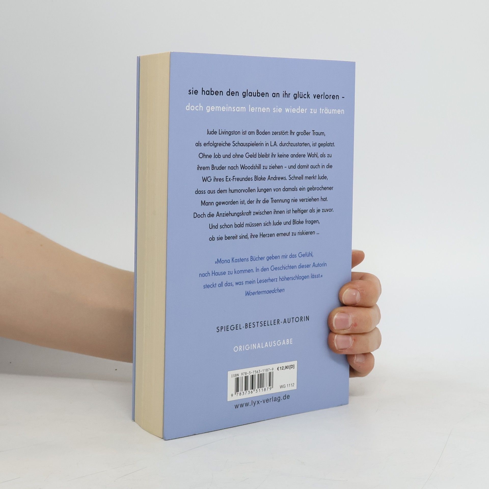 Sie haben den Glauben an ihr Glück verloren - doch gemeinsam lernen sie wieder zu träumen Jude Livingston ist am Boden zerstört: Ihr großer Traum, als erfolgreiche Schauspielerin in L. A. durchzustarten, ist geplatzt. Ohne Job und ohne Geld bleibt ihr keine andere Wahl, als zu ihrem Bruder nach Woodshill zu ziehen - und damit auch in die WG ihres Ex-Freundes Blake Andrews. Schnell merkt Jude, dass aus dem humorvollen Jungen von damals ein gebrochener Mann geworden ist, der ihr die Trennung nie verziehen hat. Doch die Anziehungskraft zwischen ihnen ist heftiger als je zuvor. Und schon bald müssen sich Jude und Blake fragen, ob sie bereit sind, ihre Herzen erneut zu riskieren ... „Mona Kastens Bücher geben mir das Gefühl, nach Hause zu kommen. In den Geschichten dieser Autorin steckt all das, was mein Leserherz höherschlagen lässt.“ WOERTERMAEDCHEN „Lache, weine und verliebe dich. Mona Kasten hat ein Buch geschrieben, das man nicht aus der Hand legen kann!“ ANNA TODD über BEGIN AGAIN Band 5 der Erfolgsreihe von Platz-1-SPIEGEL-Bestseller-Autorin Mona Kasten