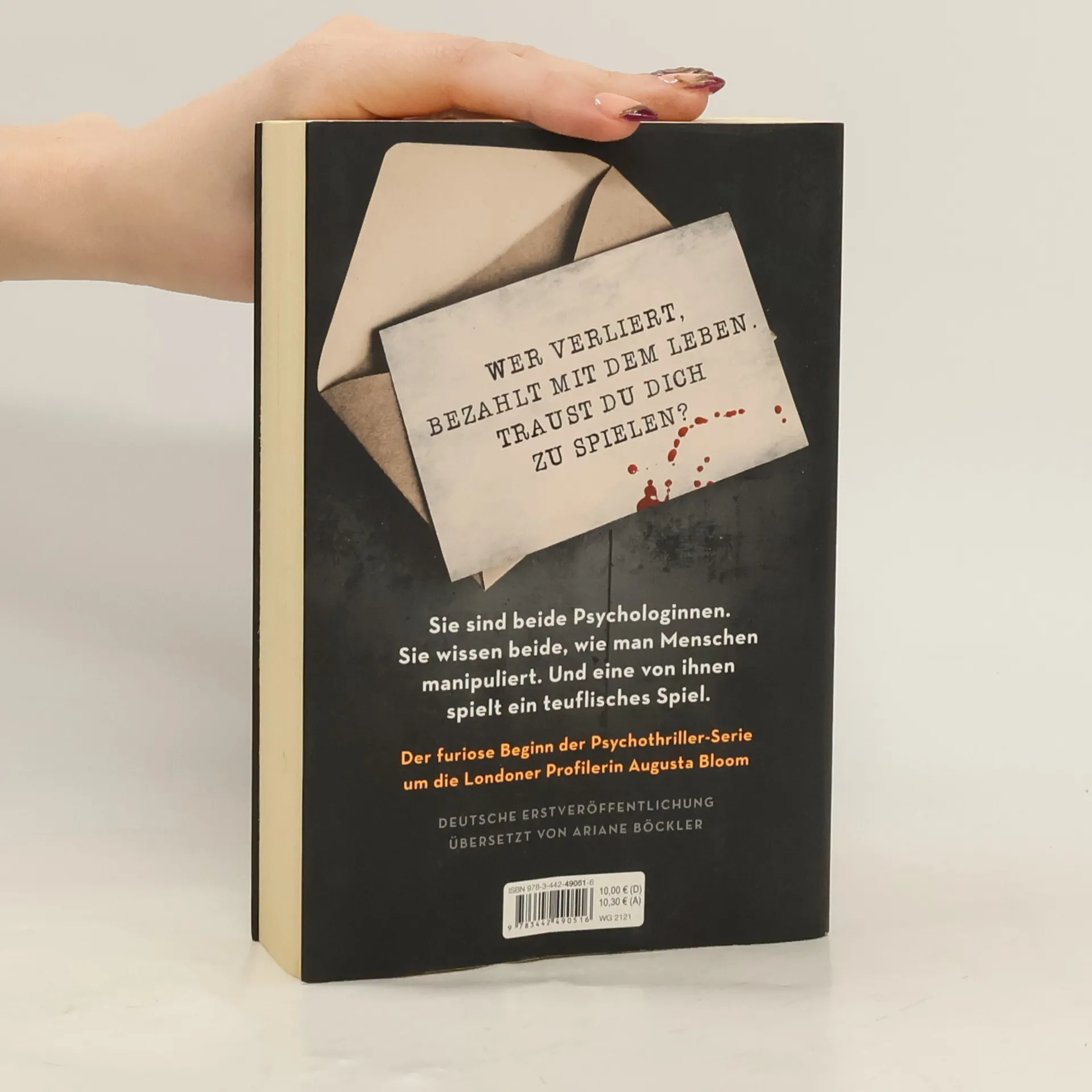 Wähle jemanden, den du kennst, und ruiniere ihn. London: Vier Menschen erhalten anonym eine Geburtstagskarte mit der Nachricht: »Dein Geschenk ist das Spiel – traust du dich zu spielen?« Danach verschwinden sie spurlos. Da die Polizei die Sache nicht ernst nimmt, engagiert die Tochter einer der Verschwundenen die Psychologin und Privatdetektivin Dr. Augusta Bloom. Als Bloom die Lebensläufe der Vermissten analysiert, entdeckt sie eine Gemeinsamkeit: Alle vier hatten eine dunkle Seite, die sie vor der Welt geheim hielten – und die sie höchst gefährlich macht. Offensichtlich nutzt der Täter das Gewaltpotential seiner Opfer. Und versucht, auch Augusta Bloom in sein tödliches Spiel hineinzuziehen …