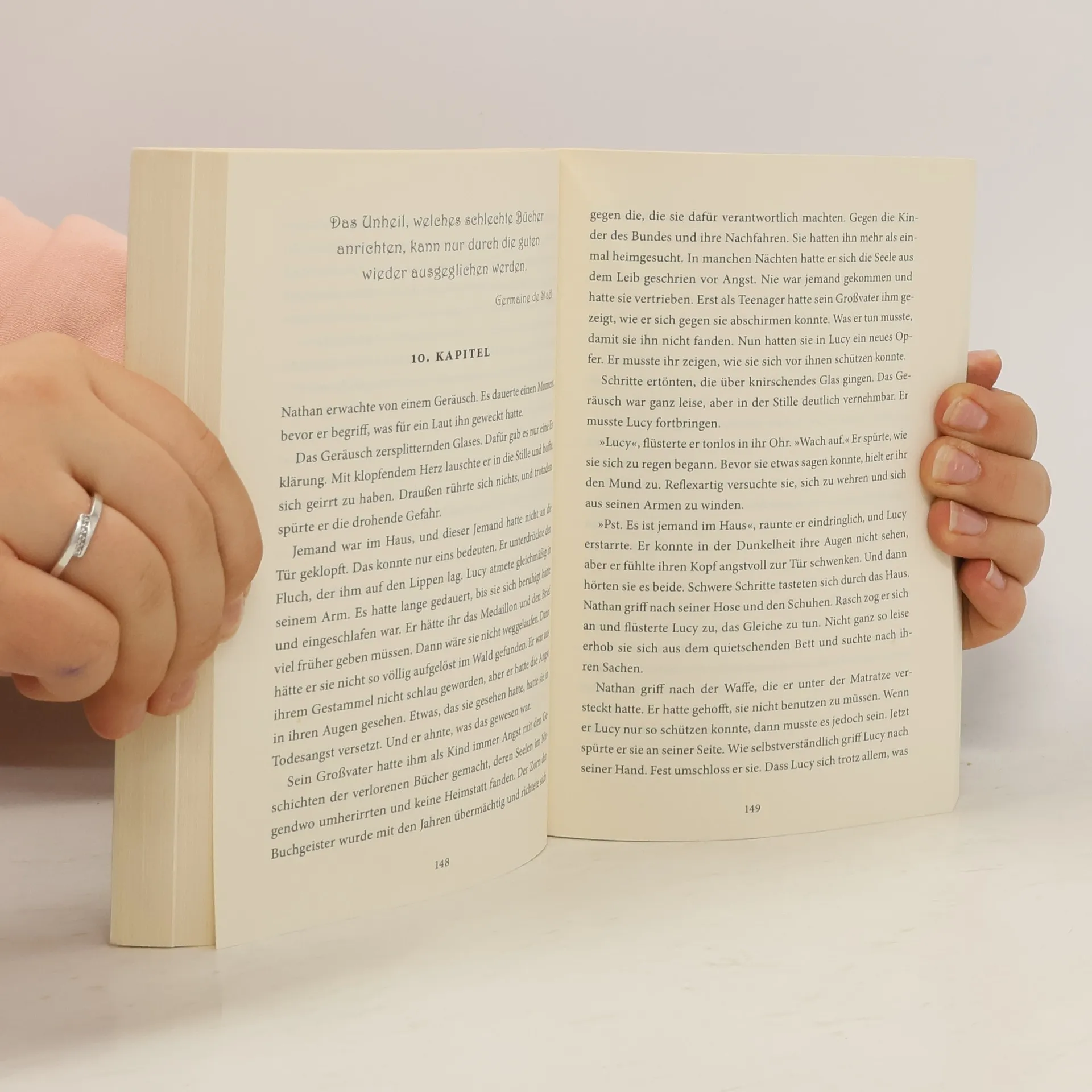 Never without a book: Das magische Flüstern! Nachdem Lucy erfuhr, dass Nathans Großvater der Kopf eines Bundes ist, der seit Jahrhunderten Bücher ausliest, um sie vor dem Missbrauch der Menschheit zu schützen, lüftet Nathan das Geheimnis: Sie ist die letzte Nachfahrin eines Geschlechts, das die Bücher beschützen und den Menschen zugänglich machen will. Und nur mit ihm ist ihr die Stärke gegeben, das Vermächtnis der Hüterinnen zu erfüllen. Doch ihnen bleibt nicht viel Zeit. Unglaublich spannende Geschichte mit bibliophilem Thema!