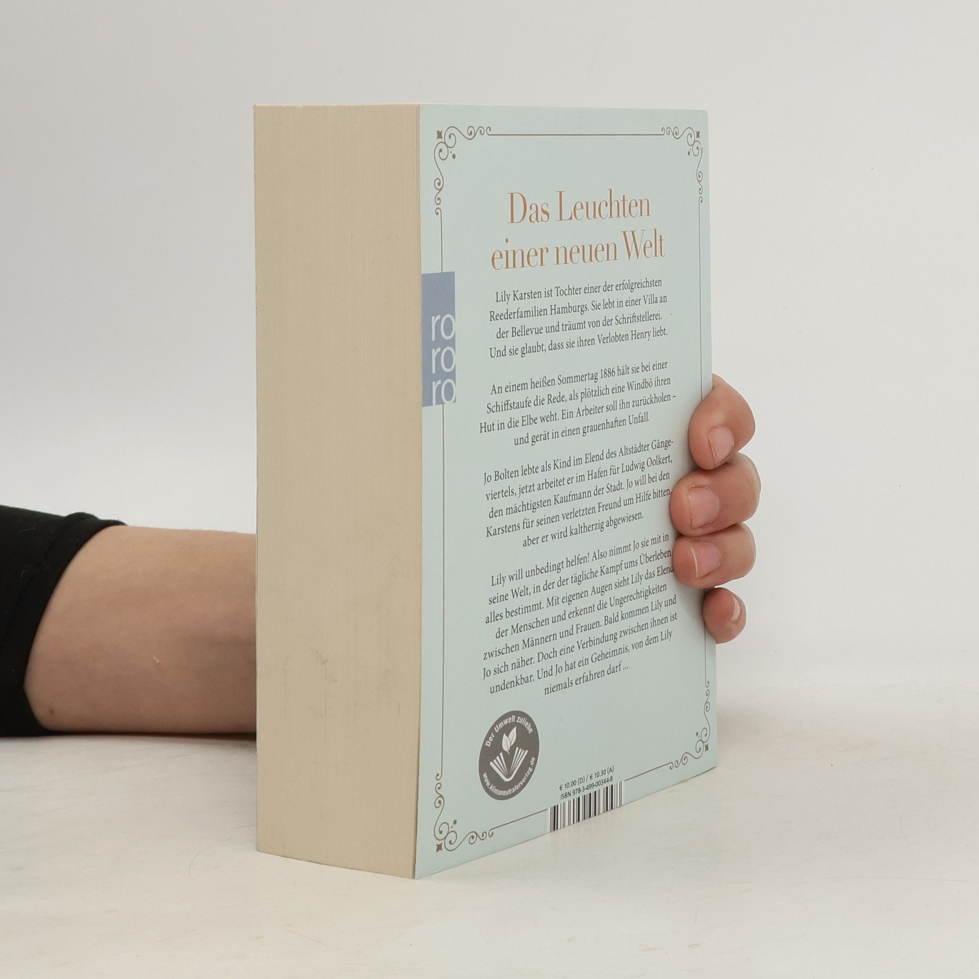 Das Leuchten einer neuen Welt Lily Karsten ist Tochter einer der erfolgreichsten Reederfamilien Hamburgs. Sie lebt in einer Villa an der Bellevue und träumt von der Schriftstellerei. Und sie glaubt, dass sie ihren Verlobten Henry liebt. An einem heißen Sommertag 1886 hält sie bei einer Schiffstaufe die Rede, als plötzlich eine Windbö ihren Hut in die Elbe weht. Ein Arbeiter soll ihn zurückholen – und gerät in einen grauenhaften Unfall. Jo Bolten lebte als Kind im Elend des Altstädter Gängeviertels, jetzt arbeitet er im Hafen für Ludwig Oolkert, den mächtigsten Kaufmann der Stadt. Jo will bei den Karstens für seinen verletzten Freund um Hilfe bitten, aber er wird kaltherzig abgewiesen. Lily will unbedingt helfen! Also nimmt Jo sie mit in seine Welt, in der der tägliche Kampf ums Überleben alles bestimmt. Mit eigenen Augen sieht Lily das Elend der Menschen und erkennt die Ungerechtigkeiten zwischen Männern und Frauen. Bald kommen Lily und Jo sich näher. Doch eine Verbindung zwischen ihnen ist undenkbar. Und Jo hat ein Geheimnis, von dem Lily niemals erfahren darf ...