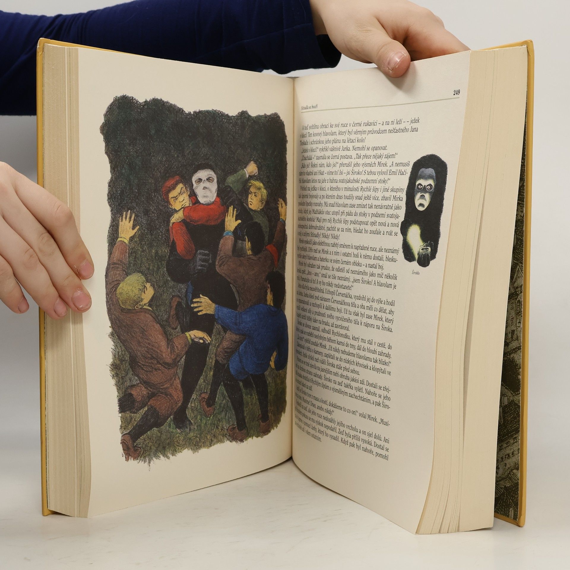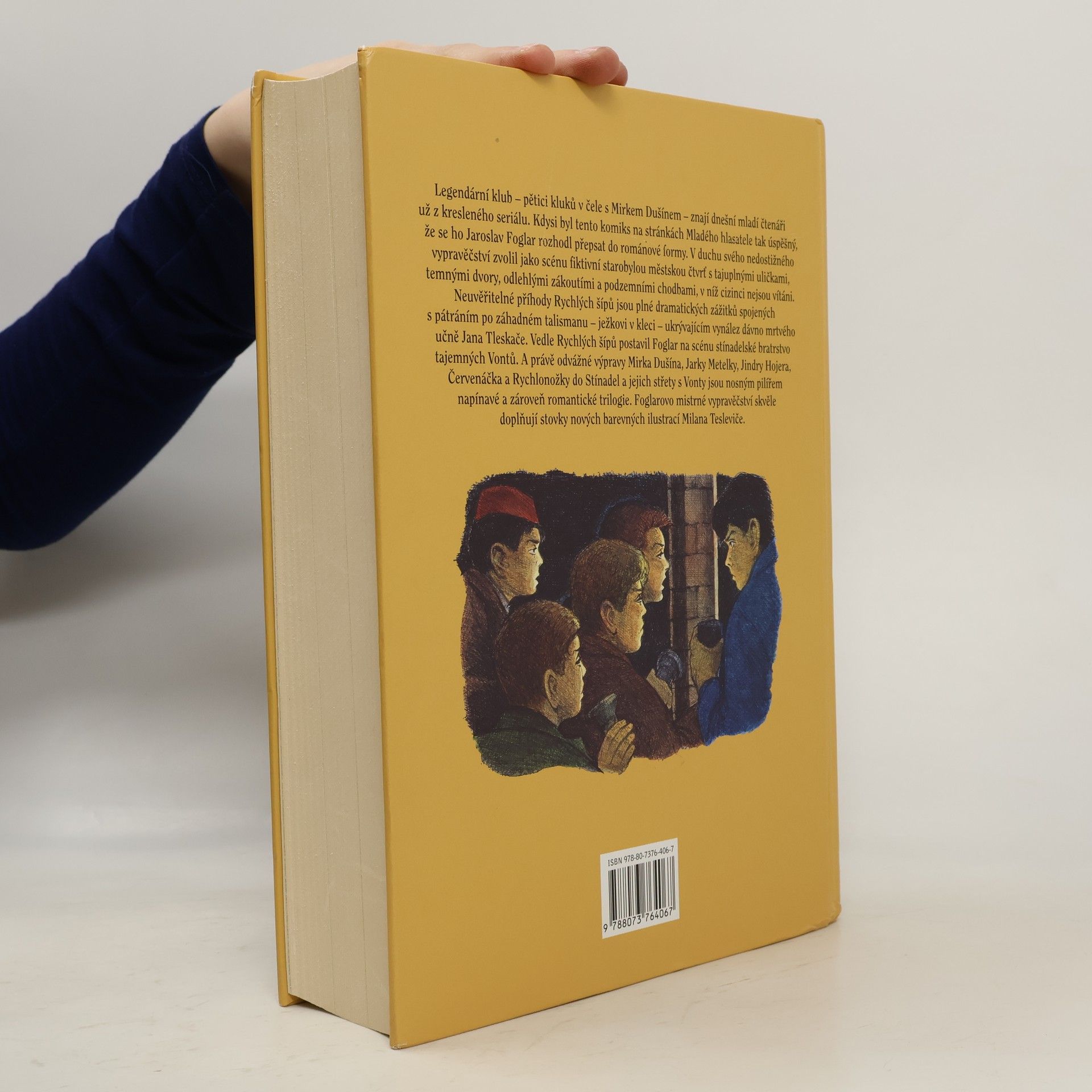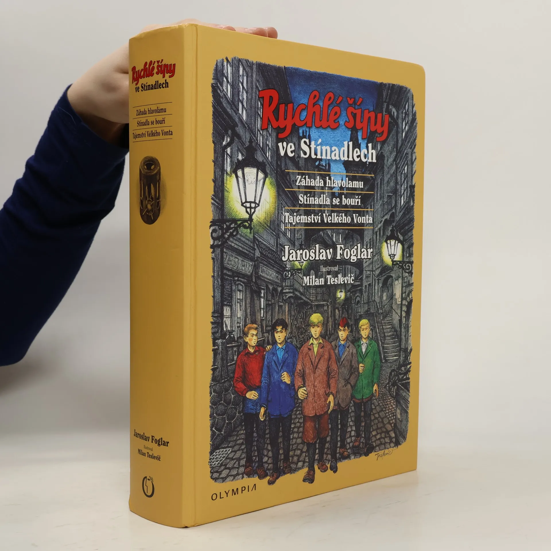 Záhada hlavolamu, Stínadla se bouří a Tajemství Velkého Vonta. Výpravné souborné vydání slavné stínadelské trilogie Jaroslava Foglara. Neuvěřitelné příhody Rychlých šípů plné soubojů a tajuplných zážitků při pátrání po záhadném talismanu ježkovi v kleci, ukrývajícím vynález dávno mrtvého učně Jana Tleskače, jejich výpravy do starobylé městské čtvrti, ovládané tajemným bratrstvem Vontů, kde "cizinci" nemají co pohledávat, čítaly celé generace mladých čtenářů jedním dechem. Foglarovo nedostižné vypravěčství skvěle doplňuje více než 600 nových barevných ilustrací Milana Tesleviče. Opět je doplněna zasvěcenou ediční poznámkou, jejímž autorem je Vácal Nosek - Windy. 4. souborné vydání Foglarovy trilogie – druhé (upravené) s tímto názvem a ilustracemi (Milan Teslevič) a grafické úpravě – velký formát.