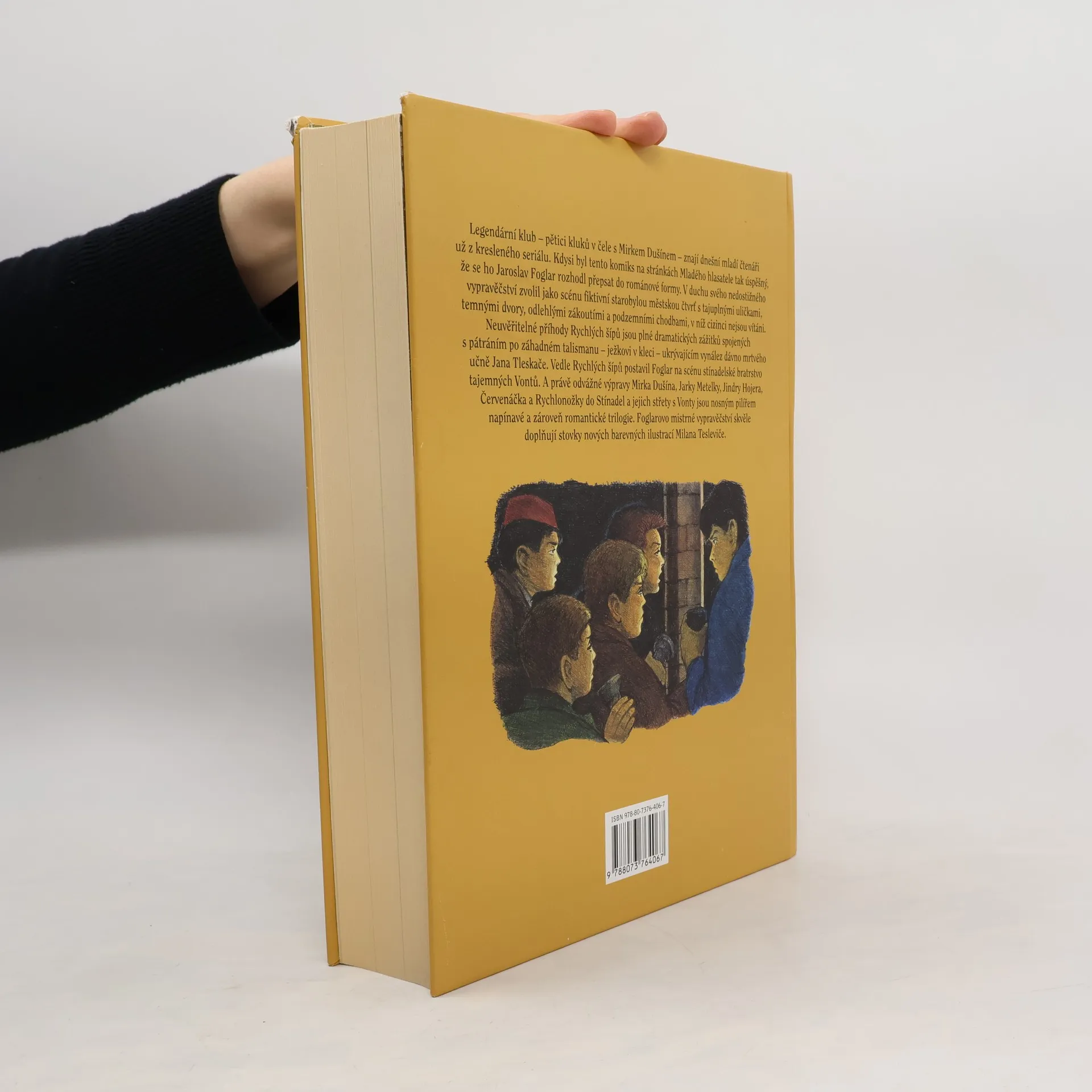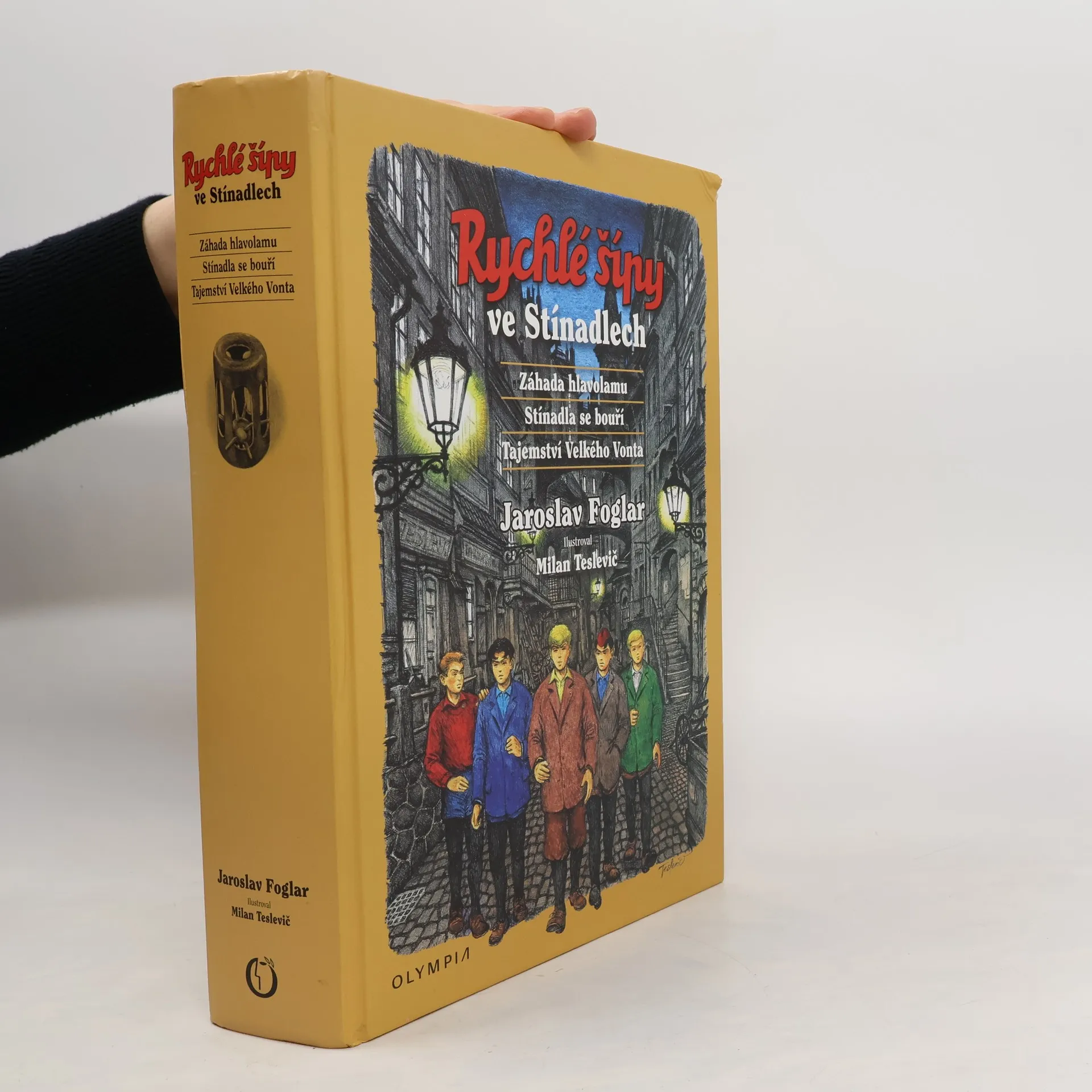Záhada hlavolamu, Stínadla se bouří a Tajemství Velkého Vonta. Výpravné souborné vydání slavné stínadelské trilogie Jaroslava Foglara. Neuvěřitelné příhody Rychlých šípů plné soubojů a tajuplných zážitků při pátrání po záhadném talismanu ježkovi v kleci, ukrývajícím vynález dávno mrtvého učně Jana Tleskače, jejich výpravy do starobylé městské čtvrti, ovládané tajemným bratrstvem Vontů, kde "cizinci" nemají co pohledávat, čítaly celé generace mladých čtenářů jedním dechem. Foglarovo nedostižné vypravěčství skvěle doplňuje více než 600 nových barevných ilustrací Milana Tesleviče. Opět je doplněna zasvěcenou ediční poznámkou, jejímž autorem je Vácal Nosek - Windy. 4. souborné vydání Foglarovy trilogie – druhé (upravené) s tímto názvem a ilustracemi (Milan Teslevič) a grafické úpravě – velký formát.