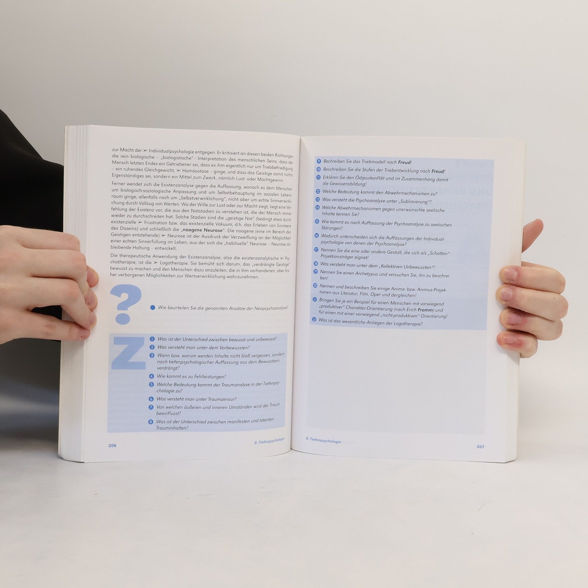 „Psychologie“ stellt Inhalte vor, die Selbsterkenntnis, Problembewusstsein und Kritikfähigkeit fördern und dazu beitragen, Wesensart und Verhaltensweisen anderer Menschen besser verstehen und respektieren zu lernen. Zum Konzept: Anmerkungen zu Kapitelbeginn regen zu einer ersten Auseinandersetzung mit dem Thema an // Fragen stellen den Bezug zur Erfahrungswelt der Lernenden her und regen zur Diskussion an // Tests machen neugierig und fördern die aktive Teilnahme am Unterrichtsgeschehen // Zusammenfassenden Fragen am Kapitelende vertiefen Zusammenhänge // Begriffe, die einer näheren Erklärung bedürfen, sind in Schmuckfarbe gesetzt, ein ausführliches Verzeichnis psychologischer Fachausdrucke findet sich im Anhang // Aus dem Inhalt: Die Psychologie als Wissenschaft vom Menschen - Materielle und organische Grundlagen des psychischen Geschehens - Empfindungen und Wahrnehmungen - Gedächtnis und Lernen - Sprache und Denken - Motivation - Emotionen - Tiefenpsychologie - Psychische Abweichungen und Behandlungsmethoden - Entwicklungspsychologie - Psychologie der Persönlichkeit - Sozialpsychologie - Umwelt- und Friedenspsychologie. Ergänzte Neuauflage nach dem Lehrplan 2004: Störungen des Sexualverhaltens - Motivation in Organisationen - Globalisierung und Interkulturalität