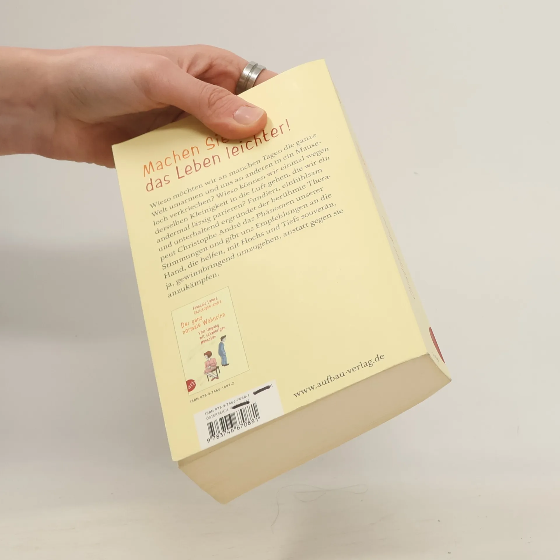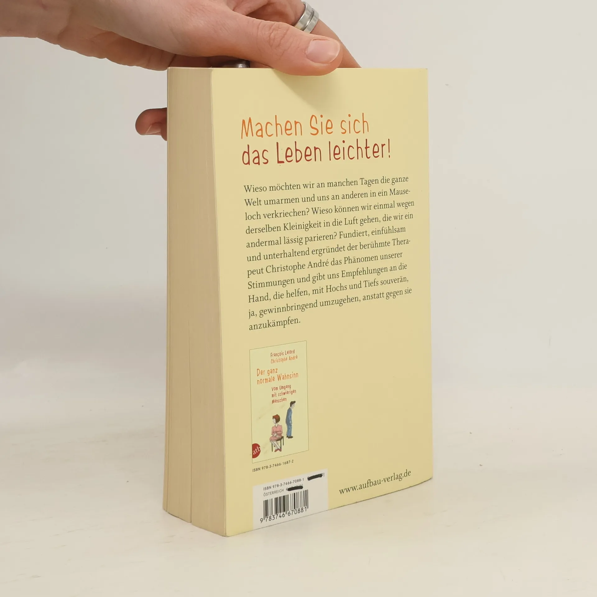 Machen Sie sich das Leben leichter! Wieso umarmen wir an manchen Tagen die Welt und ziehen uns an anderen zurück? Warum reagieren wir auf dieselbe Kleinigkeit mal explosiv und mal gelassen? Der renommierte Therapeut Christophe André untersucht einfühlsam und unterhaltsam das Phänomen unserer Stimmungen und bietet praktische Empfehlungen, um mit Hochs und Tiefs souverän umzugehen, anstatt gegen sie anzukämpfen. Wer traut sich schon, seinem Chef zu sagen, dass er heute nicht in Stimmung für bestimmte Aufgaben ist? Stimmungen empfinden wir oft als Störenfriede, die uns am reibungslosen Funktionieren hindern. Doch sie begleiten uns ständig – positiv, negativ oder neutral – und prägen unseren Alltag entscheidend. André analysiert dieses Phänomen anhand klinischer Studien, einfühlsamer Fallbeispiele sowie Anleihen aus Literatur und Philosophie. Er gibt dem Leser detaillierte und anschauliche Empfehlungen, um mit seinen Stimmungen umzugehen und auf sie zu hören. So lassen sich vermeintliche Schwächen in innere Stärke verwandeln.