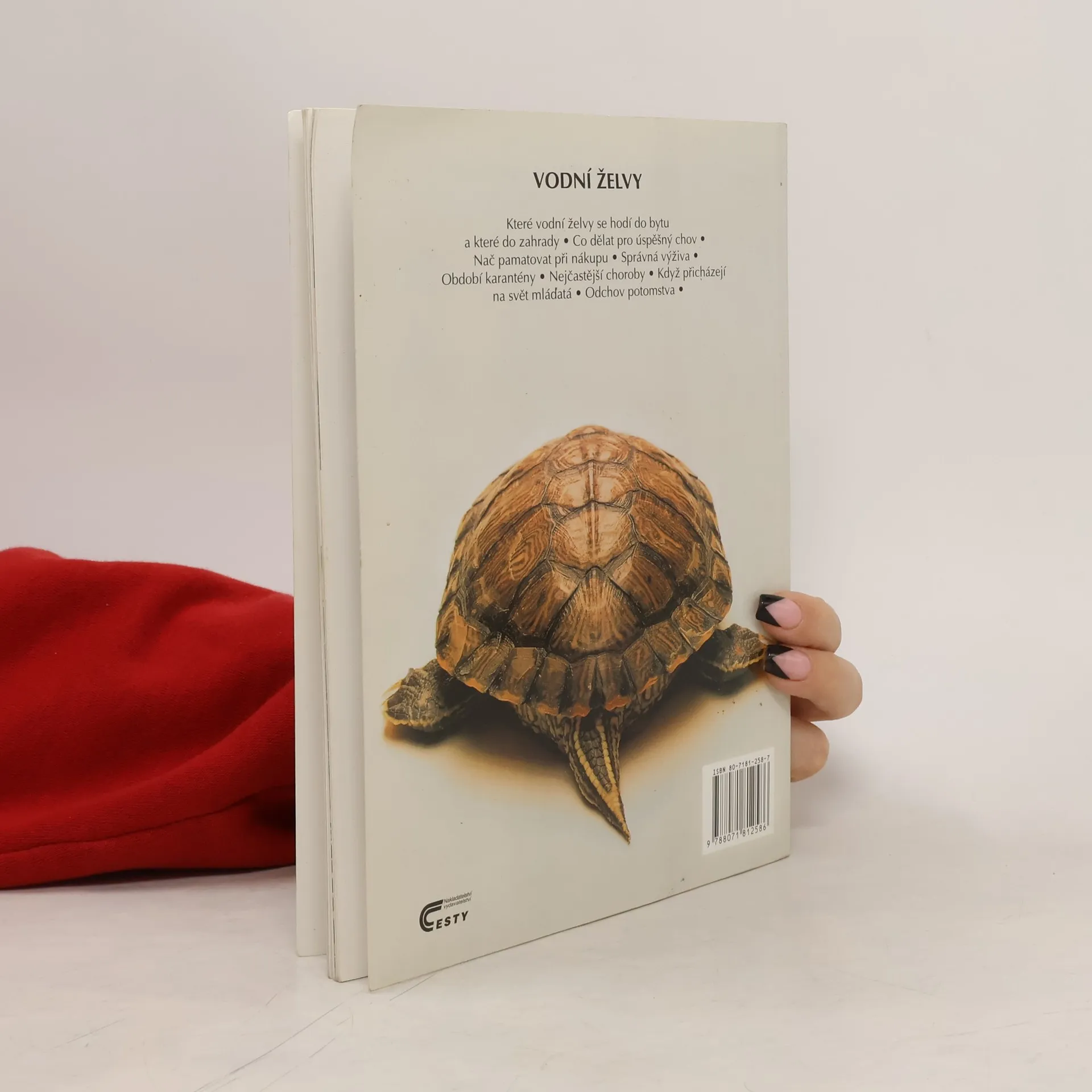 Zájemci se dozví o historickém původu a rozšíření vodní želvy. Dostanou informace o možnostech jejího získání, o jejím umístění v akvateráriu v bytě i na zahradě, o jejím chování, výživě, hygieně, rozmnožování i nemocech. Je to další knížka vycházející v edici Zvířata u nás doma a svým přístupným a názorným způsobem zpracování si jistě najde cestu k širokému okruhu zájemců. Text je doplněn kresbami a barevnými fotografiemi.