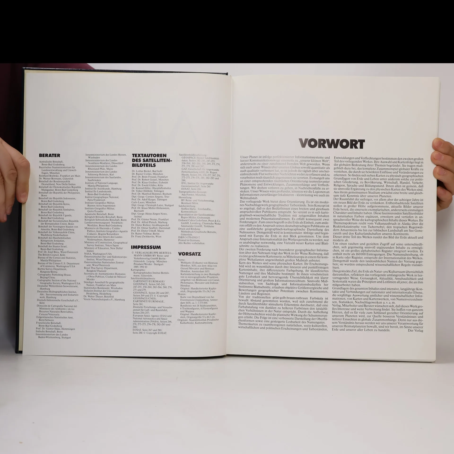 davon 230 S. Ktn mit 250 topogr. u. thematischen Ktn, 44 Stadtumgebungsktn, 40 Satellitenabb., 175000 Stichw., 174 S. Reg.