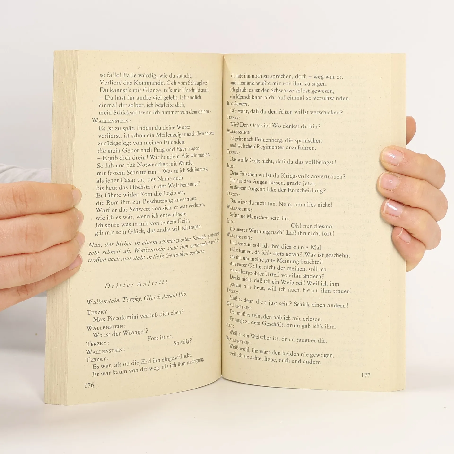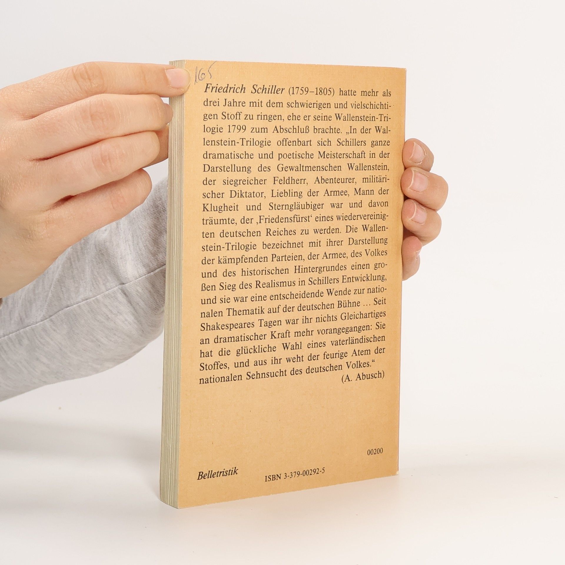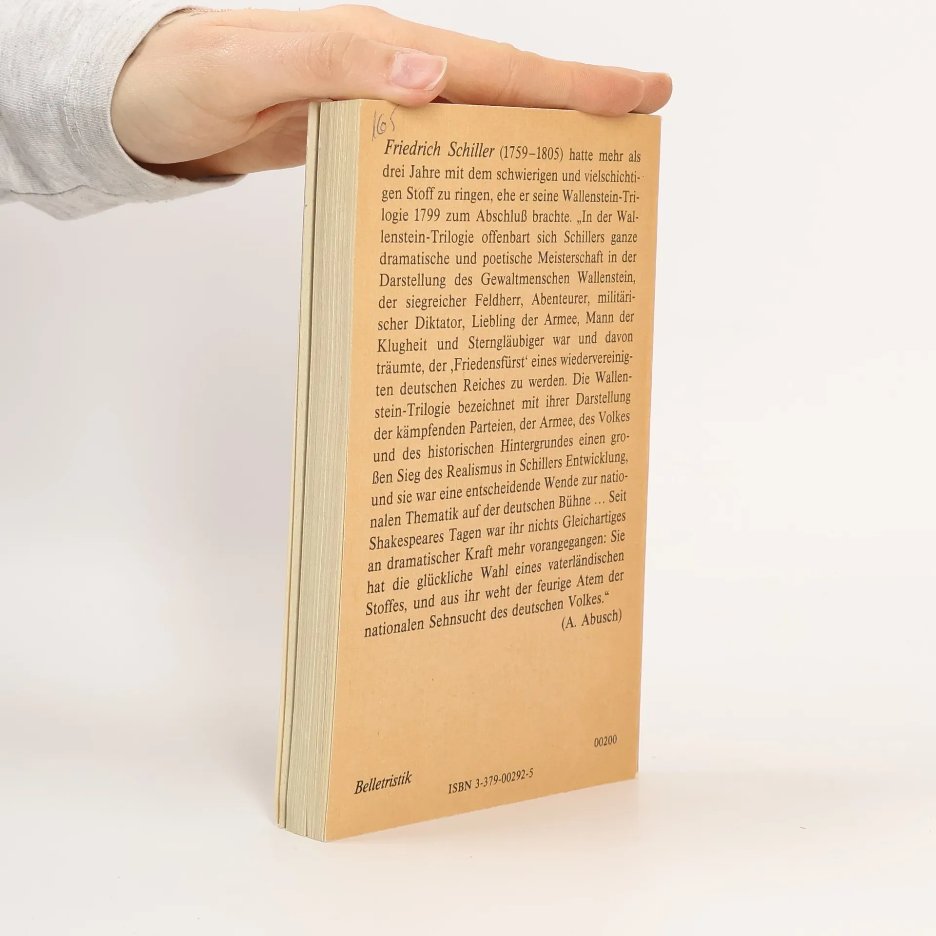 "Friedrich Schiller (1759-1805) hatte mehr als drei Jahre mit dem schwierigen und vielschichtigen Stoff zu ringen, ehe er seine Wallenstein-Trilogie 1799 zum Abschluss brachte. 'In der Wallenstein-Trilogie offenbart sich Schillers ganze dramatische und poetische Meisterschaft in der Darstellung des Gewaltmenschen Wallenstein, der siegreicher Feldherr, Abenteurer, militärischer Diktator, Liebling der Armee, Mann der Klugheit und Sterngläubiger war und davon träumte, der 'Friedensfürst` eines wiedervereinigten deutschen Reiches zu werden. Die Wallenstein-Trilogie bezeichnet mit ihrer Darstellung der kämpfenden Parteien, der Armee, des Volkes und des historischen Hintergrundes einen großen Sieg des Realismus in Schillers Entwicklung, und sie war eine entscheidende Wende zur nationalen Thematik auf der deutschen Bühne ... Seit Shakespeares Tagen war ihr nichts Gleichartiges an dramatischer Kraft mehr vorangegangen: Sie hat die glückliche Wahl eines vaterländischen Stoffes, und aus ihr weht der feurige Atem der nationalen Sehnsucht des deutschen Volkes.'" (A. Abusch)