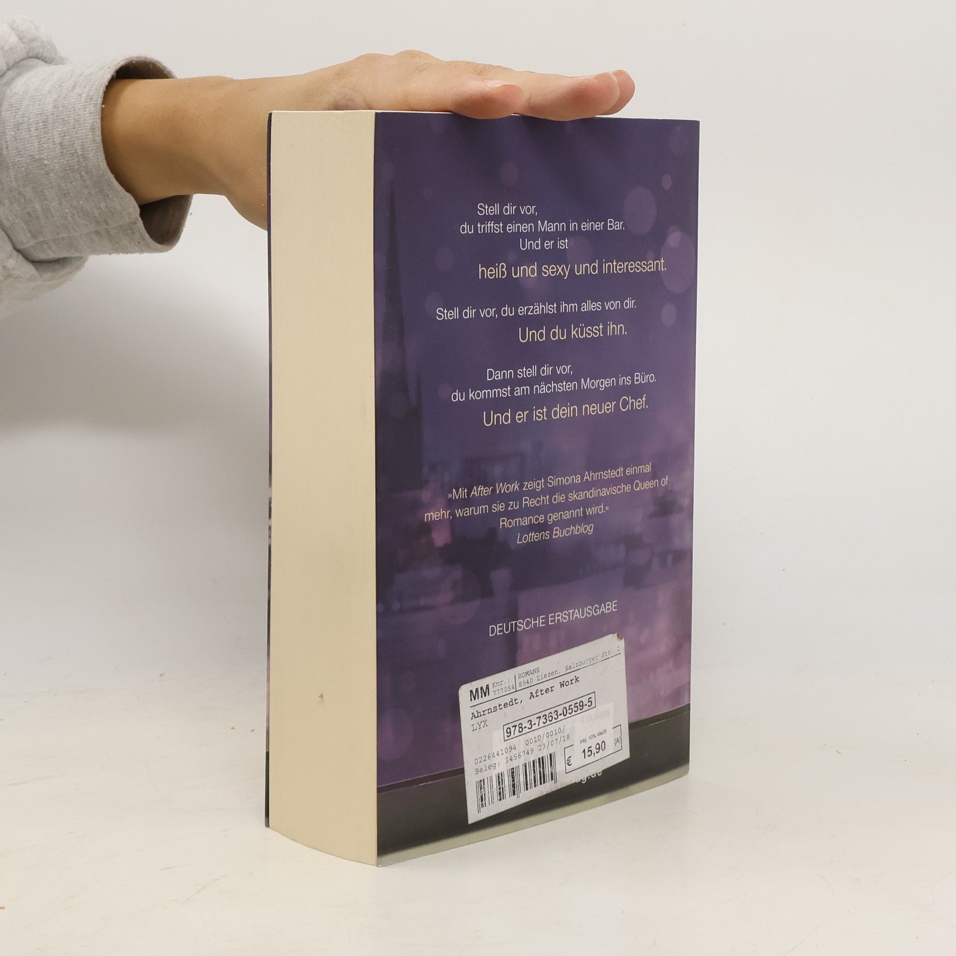 Stell dir vor, du triffst einen Mann in einer Bar. Und er ist heiß und sexy und interessant. Stell dir vor, du erzählst ihm alles von dir. Und du küsst ihn. Dann stell dir vor, du kommst am nächsten Morgen ins Büro. Und er ist dein neuer Chef. „Mit After Work zeigt Simona Ahrnstedt einmal mehr, warum sie zu Recht die skandinavische Queen of Romance genannt wird.“ Lottens Buchblog Heiß ersehnt: der neue Roman von der skandinavischen Queen of Romance!