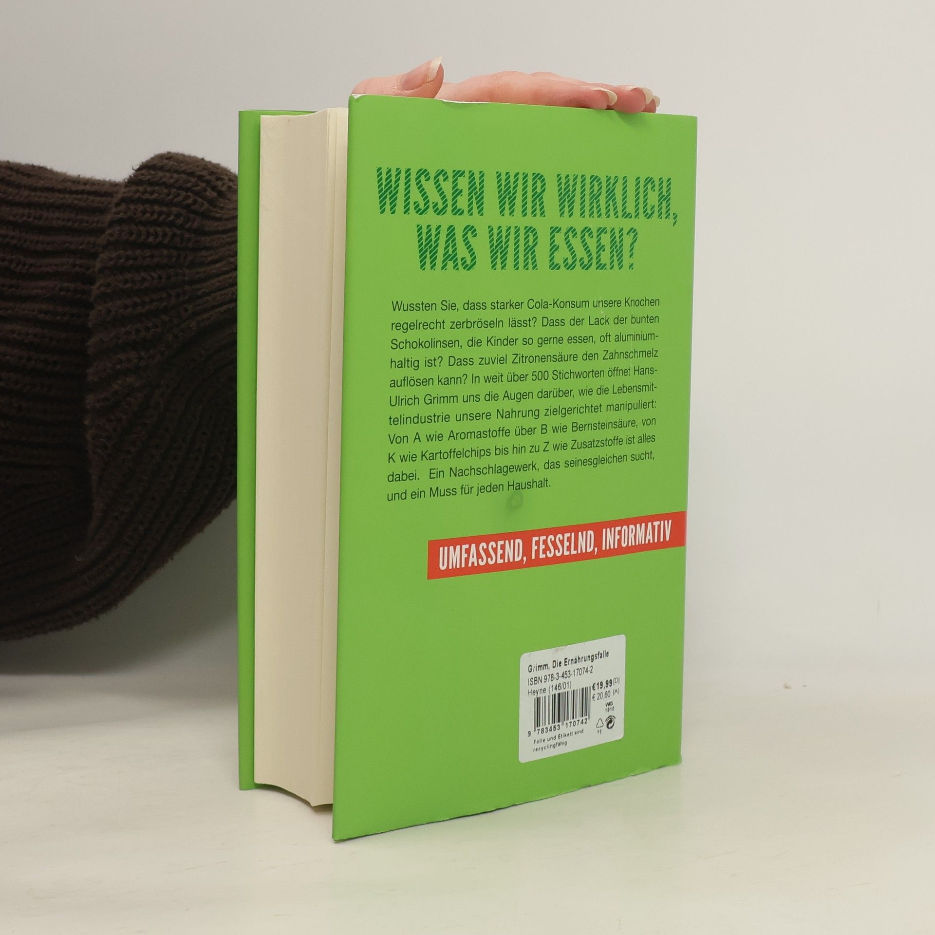 Sie nennen es Essen. Aluminiumhaltige Schokolinsen, Plastikhormone in Babynahrung, gefährliche Zitronensäure in Gummibärchen: Was steckt eigentlich im Essen drin, das wir Tag für Tag bedenkenlos zu uns nehmen? Der Nahrungskritiker und Bestsellerautor Hans-Ulrich Grimm geht den kleinen und großen Lügen der Lebensmittelindustrie radikal und schonungslos auf den Grund. Wussten Sie, dass Erdbeeraroma aus Sägespänen gewonnen wird? Dass der Lack der leckeren Schokolinsen, die Kinder so gerne essen, aluminiumhaltig ist? Und dass Zitronensäure im Brot den Zahnschmelz auflösen kann? Zum ersten Mal gibt es jetzt alle Wahrheiten über die Bestandteile unseres täglichen Essens auf einen Blick: Von A wie Aromastoffe über B wie Bernsteinsäure, von K wie Kartoffelchips bis hin zu Z wie Zusatzstoffe öffnet Hans-Ulrich Grimm uns in über 300 Stichworten die Augen darüber, wie die Lebensmittelindustrie unsere Nahrung manipuliert. Ein Nachschlagewerk, das seinesgleichen sucht, und ein Muss für jeden Haushalt: umfassend, fesselnd, informativ.