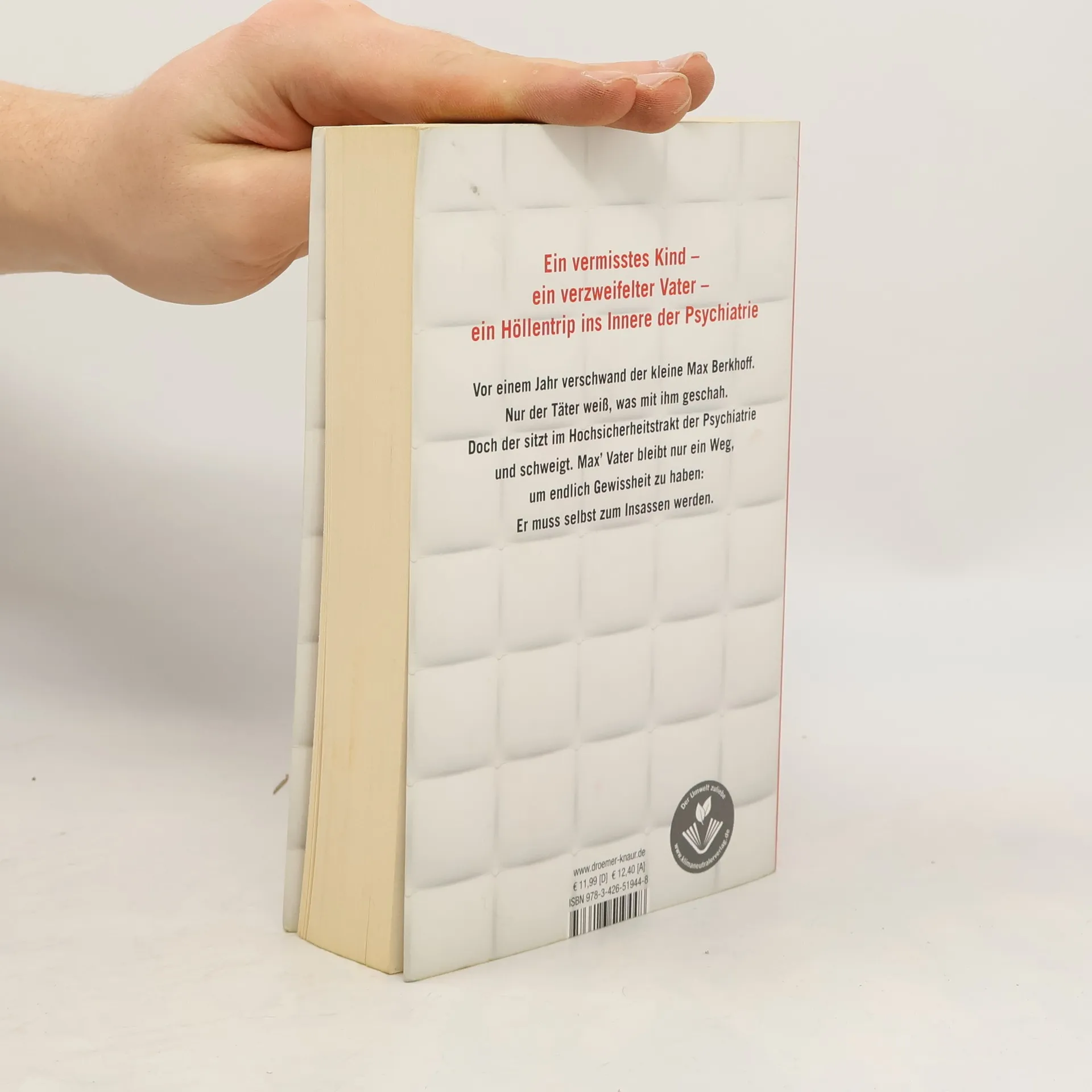 Ein vermisstes Kind und ein verzweifelter Vater stehen im Mittelpunkt eines packenden Psycho-Thrillers. Guido T. hat bereits zwei grausame Kindermorde gestanden und sitzt im Hochsicherheitstrakt der Psychiatrie. Doch nun schweigt er, und die Polizei hat keine belastbaren Beweise für seine mögliche Beteiligung am Verschwinden des sechsjährigen Max, der seit einem Jahr vermisst wird. Ohne Guids Aussage bleibt den Eltern die Gewissheit verwehrt. Monate nach Max' Verschwinden erhält der verzweifelte Vater ein unglaubliches Angebot von einem Ermittler: Er wird als falscher Patient in das psychiatrische Gefängnis-Krankenhaus eingeschleust, um dem Kindermörder so nahe wie möglich zu sein und ihn zu einem Geständnis zu bringen. Die Ungewissheit ist unerträglich, doch als er als Insasse die grausame Wahrheit entdeckt, wird alles auf den Kopf gestellt. Bestseller-Autor Sebastian Fitzek entführt die Leser auf einen verstörenden Trip in die Psychiatrie, während er mit einem raffinierten Dreh die Spannung bis zur letzten Seite aufrechterhält.