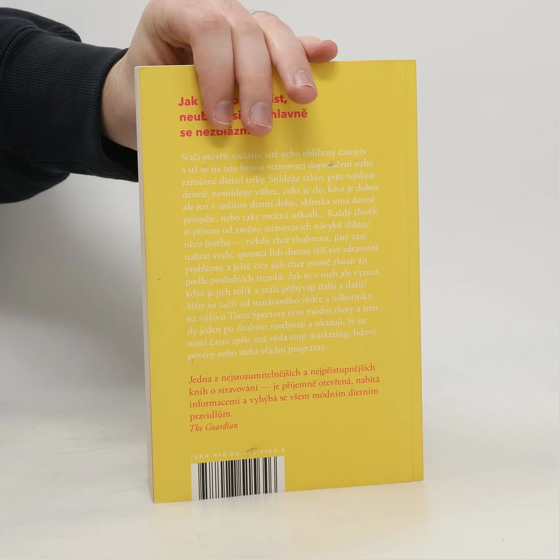 Jak se dobře najíst, neublížit si — a hlavně se nezbláznit Stačí otevřít sociální sítě nebo oblíbený časopis a už se na nás hrnou stravovací doporučení nebo zaručené dietní triky. Snídejte takto, pijte tolikrát denně, nesnídejte vůbec, cukr je zlo, káva je dobro, ale jen v určitou denní dobu, sklenka vína denně prospěje nebo taky možná uškodí… Každý člověk si přitom od změny stravovacích návyků slibuje něco jiného — někdo chce zhubnout, jiný zase nabrat svaly, spousta lidí dietou řeší své zdravotní problémy a ještě více jich chce prostě zkusit žít podle posledních trendů. Jak se v nich ale vyznat, když je jich tolik a stále přibývají další a další? Mýty na talíři od uznávaného vědce a odborníka na výživu Tima Spectora tyto módní diety a trendy jeden po druhém rozebírají a ukazují, že za nimi často spíše než věda stojí marketing, lidové pověry nebo vládní programy. O jídle bychom proto měli přemýšlet jinak než ve formě striktních pravidel či zázračných triků — stravování je pro člověka daleko důležitější, než se může zdát.