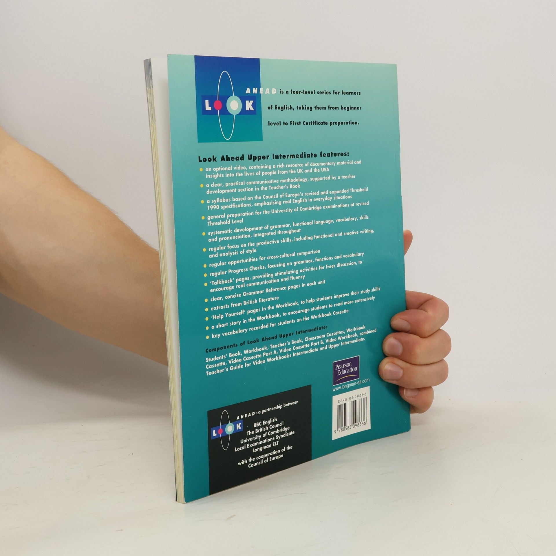 Look Ahead is a four-level series for upper secondary and young adult learners of English, taking them from beginning level to First Certificate preparation. The Longman classroom series is the institutional version of this multimedia project, created by a consortium consisting BBC English, British Council, Longman ELT, Cambridge Examinations (UCLES), with the cooperation of the Council of Europe.