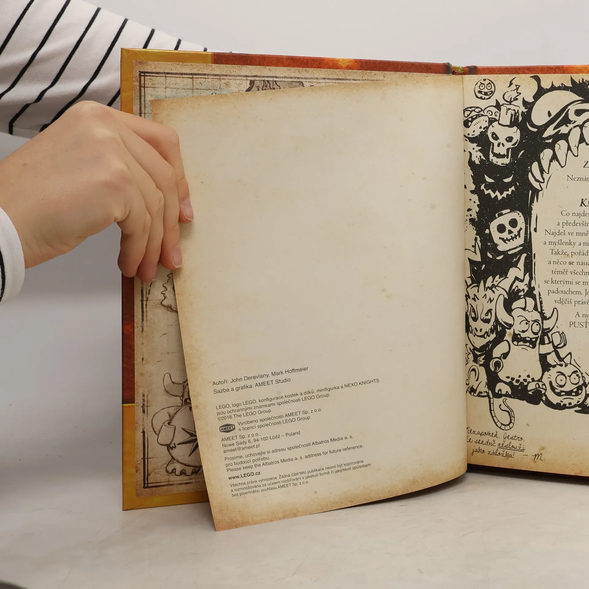 Tak ty jsi to ještě neslyšel? Kniha příšer není jen tak nějaká obyčejná kniha. Je živá a navíc je to jeden z hlavních padouchů, proti kterým bojují rytíři NEXO Knights. Je zlomyslná, zákeřná a nebezpečná, ale obsahuje spoustu užitečných informací. Dozvíš se v ní, jak celý spor začal, na jaké druhy zlých příšer si dát pozor, čeho se při setkání s nimi vyvarovat, a dokonce i to, jak si upéct ty nejlepší lávové koláčky. Tak se pusť do čtení! Ale dávej velký pozor, Kniha příšer je pěkně zákeřný zlořád!