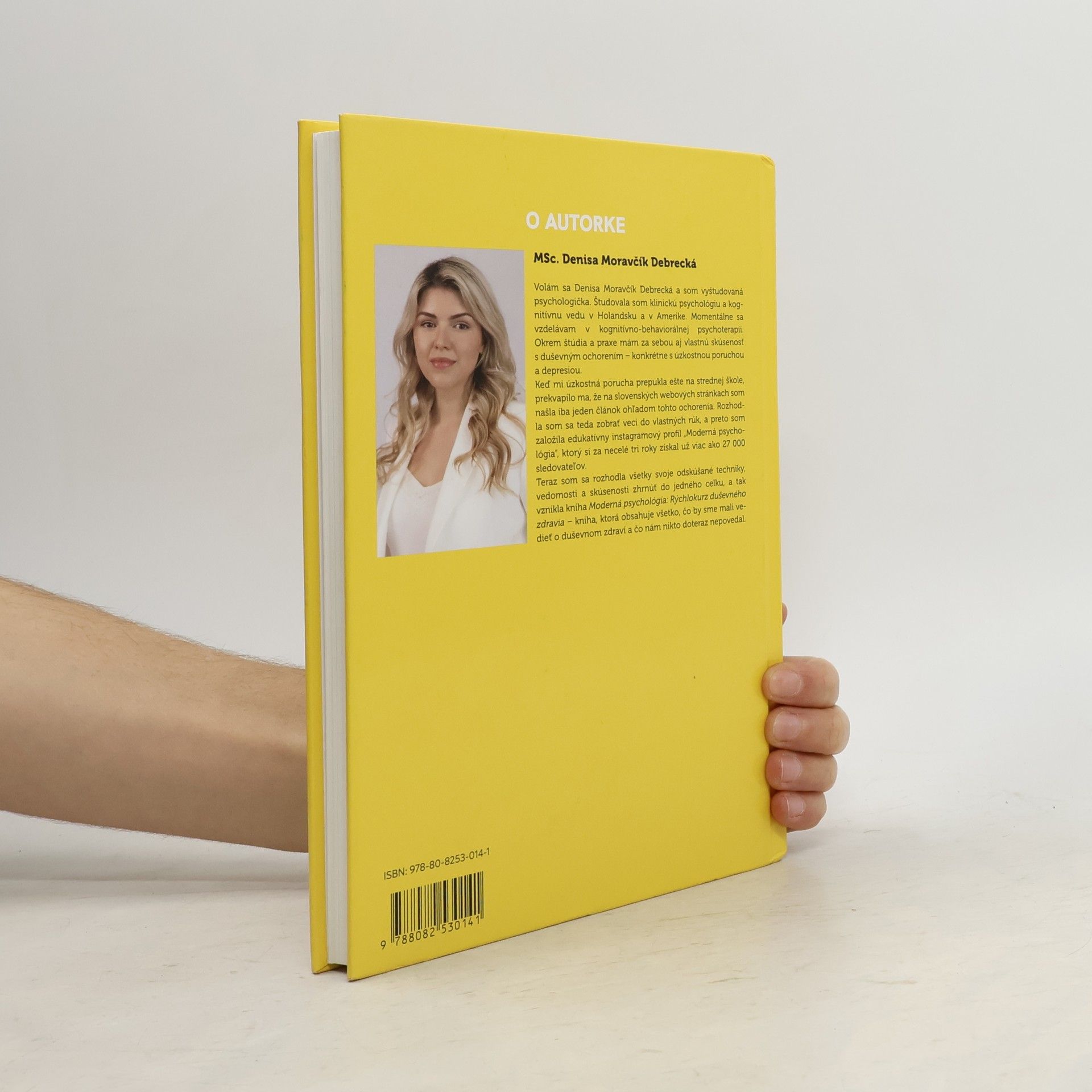 Vždy som chcela zhrnúť svoje poznatky a techniky do jedného celku, a tak vznikla kniha „Moderná psychológia: Rýchlokurz duševného zdravia“. Volám sa Denisa Moravčík Debrecká, som psychologička so štúdiom klinickej psychológie a kognitívnej vedy v Holandsku a Amerike. Mám aj osobnú skúsenosť s duševným ochorením, konkrétne s úzkostnou poruchou a depresiou. Založila som edukatívny Instagramový profil „Moderná psychológia“, ktorý má už viac ako 28000 sledovateľov. Kniha je založená na vedeckých poznatkoch, no je písaná jednoducho a pútavo, obsahuje zaujímavé príbehy z môjho života a praxe. Nenájdete v nej klišé rady, ale výnimočné informácie a konkrétne techniky na zvládanie výziev dnešného života. V knihe sa dozviete, ako regulovať emócie, pracovať so svojimi myšlienkami a meniť opakujúce sa vzorce správania. Nájdete fascinujúce informácie o faktoroch ovplyvňujúcich duševnú pohodu, prehľad moderných techník psychológie, praktického sprievodcu pre úzkosť, nízke sebavedomie, vyhorenie a medziľudské vzťahy. Kniha ponúka aj nástroje na zvládanie aspektov moderného sveta, ako sú sociálne siete a tlak na dokonalosť. Nie je určená len pre ľudí s duševným ochorením, ale pre každého, kto sa chce naučiť zlepšiť svoju psychickú pohodu a kvalitu života.