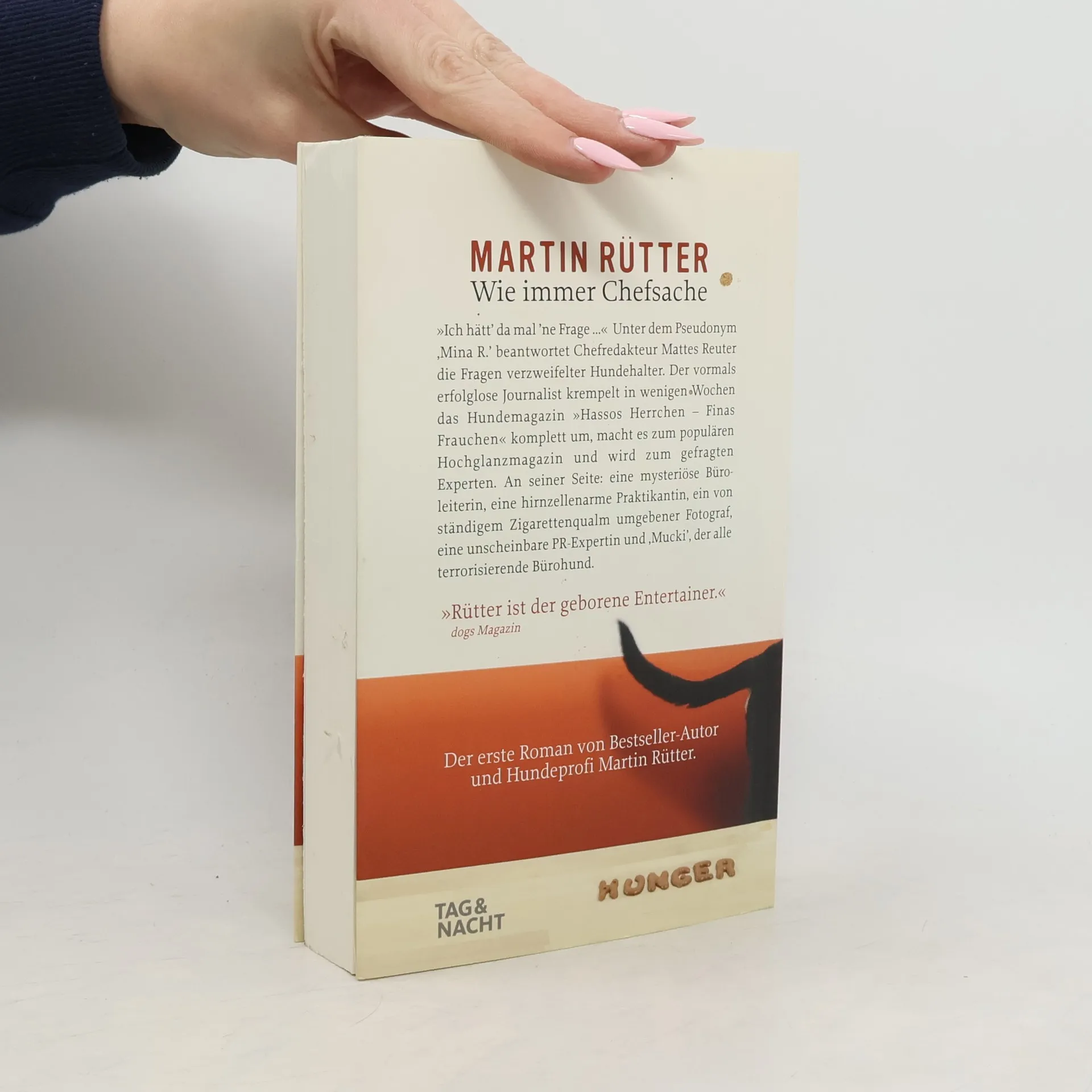 Hunde würden Rütter lesen! Menschen auch! Mattes Reuter hatte immer das Ziel, Redakteur bei der ZEIT zu werden. Leider hängt er aber noch mit vierzig als freier Mitarbeiter bei einem Stadtteilmagazin fest und wohnt, nach einer gescheiterten Beziehung, mit Hund Mina bei seiner erfolgreichen Schwester. Das liegt nicht zuletzt an seiner Philosophie, dass es „Sucher„ und „Finder“ gibt und Mattes eindeutig zu denen zählt, die lässig warten, bis sie von ihrer Chance gefunden werden. Widerwillig kommt er der Anfrage nach, bei dem Hundemagazin „Hassos Herrchen – Finas Frauchen" als Chefredakteur zu beginnen und merkt mit Entsetzen, dass er sich damit beruflich zunächst nicht verbessert. Aber er hat nichts zu verlieren und pokert hoch. Seine neu eingeführte Magazinrubrik „Ich hätt’ da mal ’ne Frage“, in der er unter dem Pseudonym ‚Mina R.’ die Probleme verzweifelter Hundehalter beantwortet, macht ihn zum Hundeexperten und sein Leben nimmt unerwartet Fahrt auf …