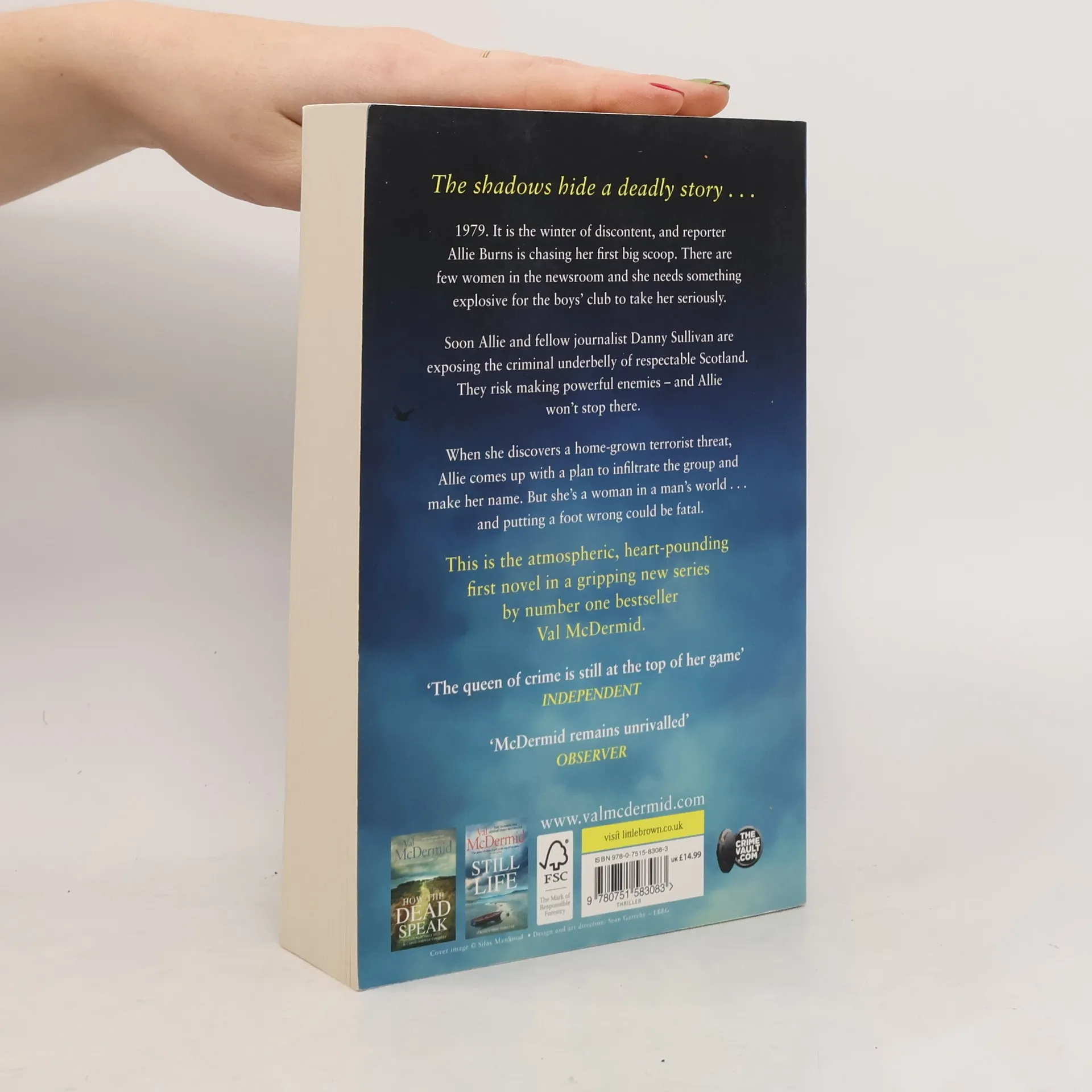 1979. It is the winter of discontent and ambitious young journalist Allie Burns is on the hunt for the story that will change her career. The only woman working the Glasgow newsdesk, she needs a ground-breaking scoop for the boy's club take her seriously. But the stakes are raised higher than Allie could ever have imagined when her journalism partner, Danny, is found murdered in his flat. Together they have been investigating stories that nobody wants exposed, and in doing so they have made some powerful enemies. As she embarks on her quest for the truth and justice for Danny, Allie is forced to tread carefully. After all, she is a woman in a man's world and - with her greatest ally dead - nobody can be trusted. This is the atmospheric, heart-pounding first novel in a gripping new series by the Queen of Crime Val McDermid.__________Praise for Val McDermid:'Brilliant . . . Sensational . . . Unforgettable' Guardian'No one can plot or tell a story like she can' Daily Express'Compulsively readable' Irish Times'One of today's most accomplished crime writers' Literary Review'As good a psychological thriller as it is possible to get' Sunday Express'It grabs the reader by the throat and never lets go' Daily Mail