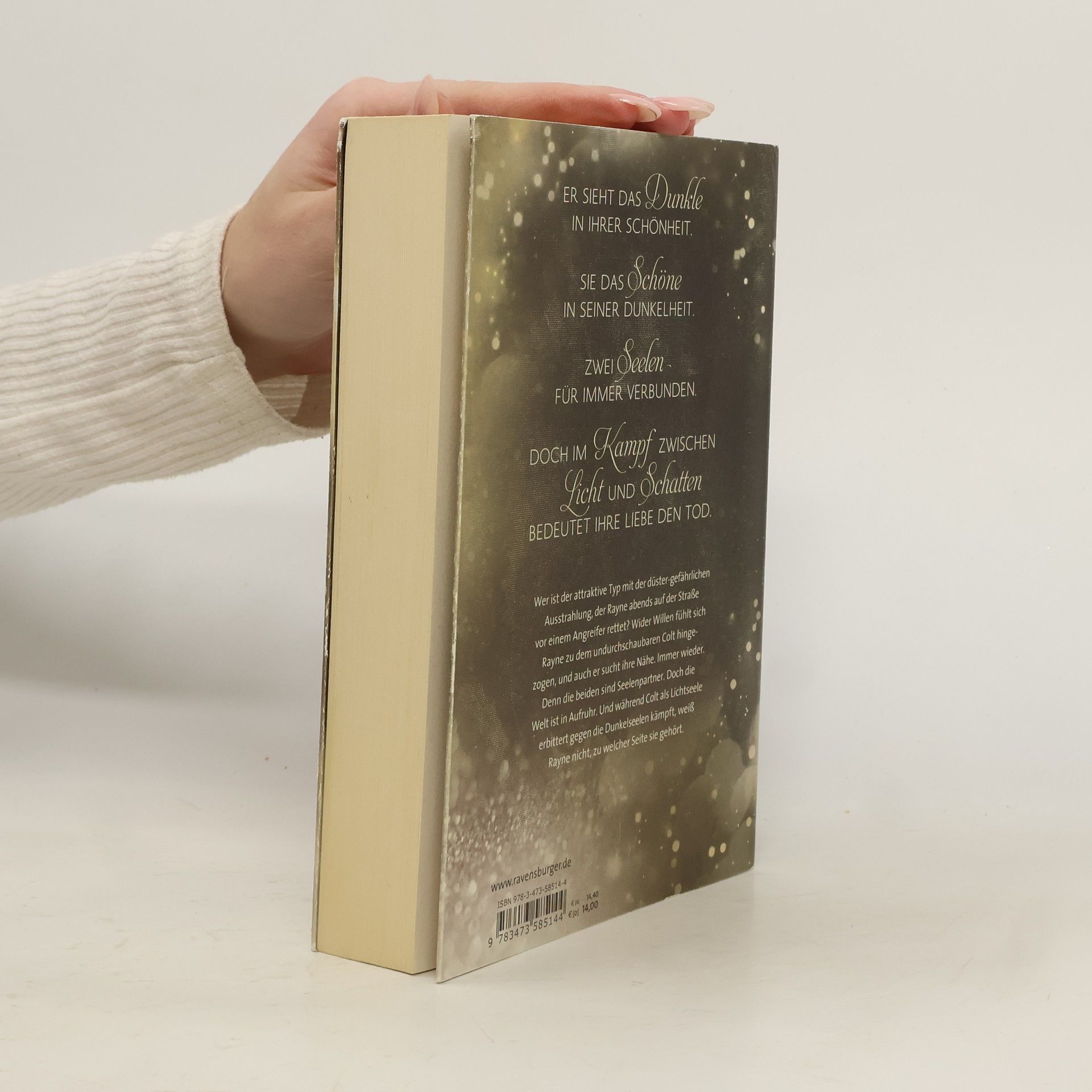 Wer ist der attraktive Typ mit der düster-gefährlichen Ausstrahlung, der Rayne abends auf der Straße vor einem Angreifer rettet? Wider Willen fühlt sich Rayne zu dem undurchschaubaren Colt hingezogen, und auch er sucht ihre Nähe. Immer wieder. Denn die beiden sind Seelenpartner. Doch die Licht- und Schattenwelt ist im Aufruhr, und während Colt auf der Seite der Lichtseelen steht, weiß Rayne nicht, zu wem sie gehört.