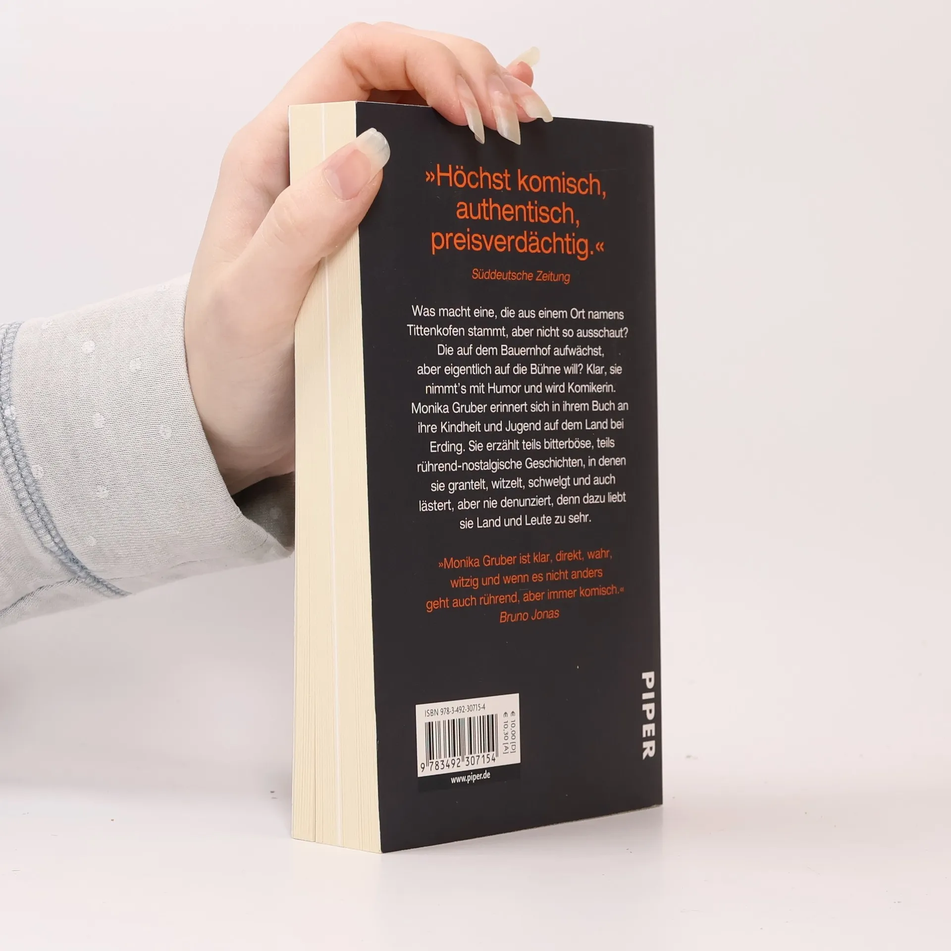 Was macht eine, die aus einem Ort namens Tittenkofen stammt, aber nicht so ausschaut? Die auf dem Bauernhof aufwächst, aber eigentlich auf die Bühne will? Klar, sie nimmt’s mit Humor und wird Komikerin. Monika Gruber erinnert sich in ihrem Buch an ihre Kindheit und Jugend auf dem Land bei Erding. Sie erzählt teils bitterböse, teils rührend-nostalgische Geschichten, in denen sie grantelt, witzelt, schwelgt und auch lästert, aber nie denunziert, denn dazu liebt sie Land und Leute zu sehr.