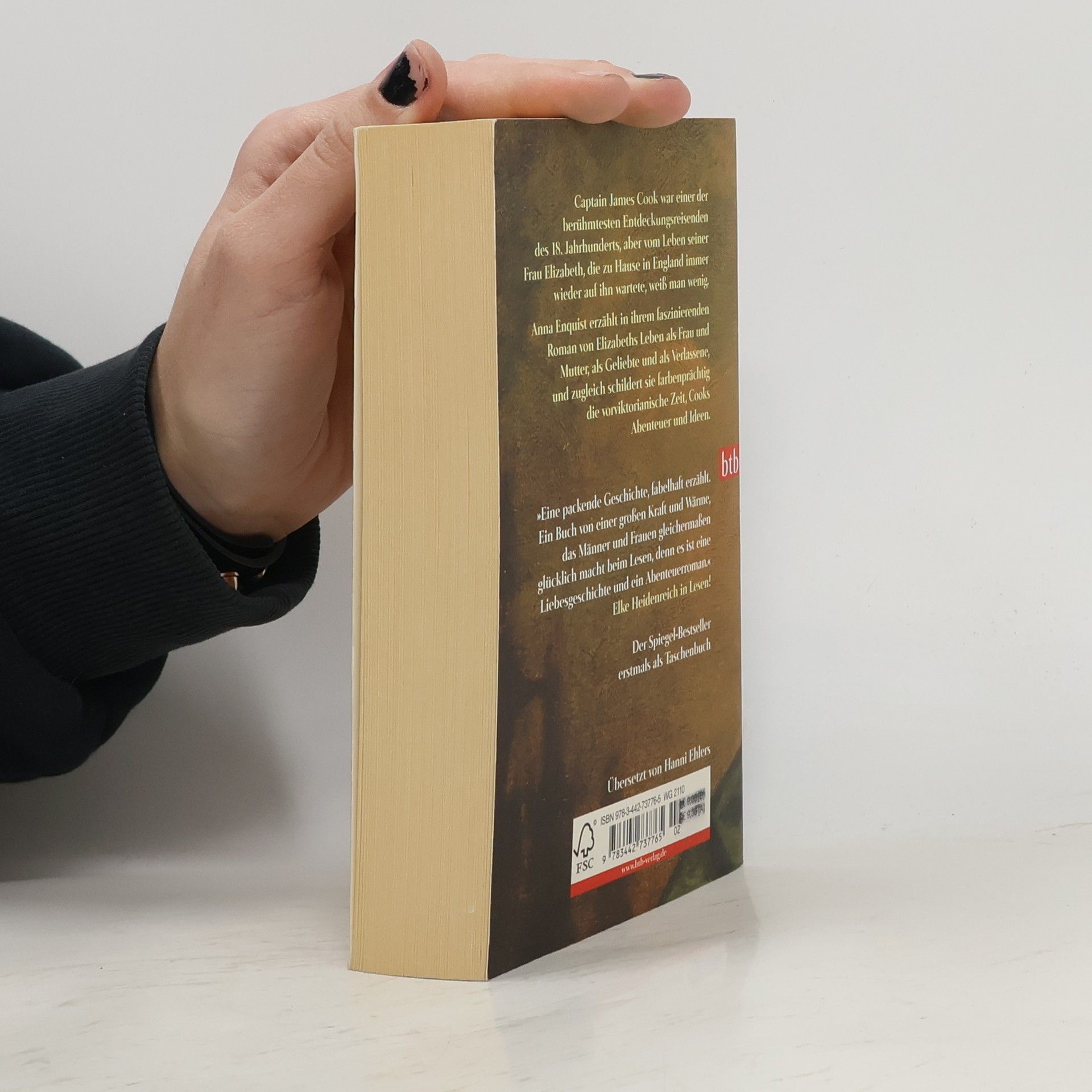 Captain James Cook war einer der berühmtesten Entdeckungsreisenden des 18. Jahrhunderts, aber vom Leben seiner Frau Elizabeth, die zu Hause in England immer wieder auf ihn wartete, weiß man wenig. Anna Enquist erzählt in ihrem faszinierenden Roman von Elizabeths Leben als Frau und Mutter, als Geliebte und als Verlassene, und zugleich schildert sie farbenprächtig die vorviktorianische Zeit, Cooks Abenteuer und Ideen.