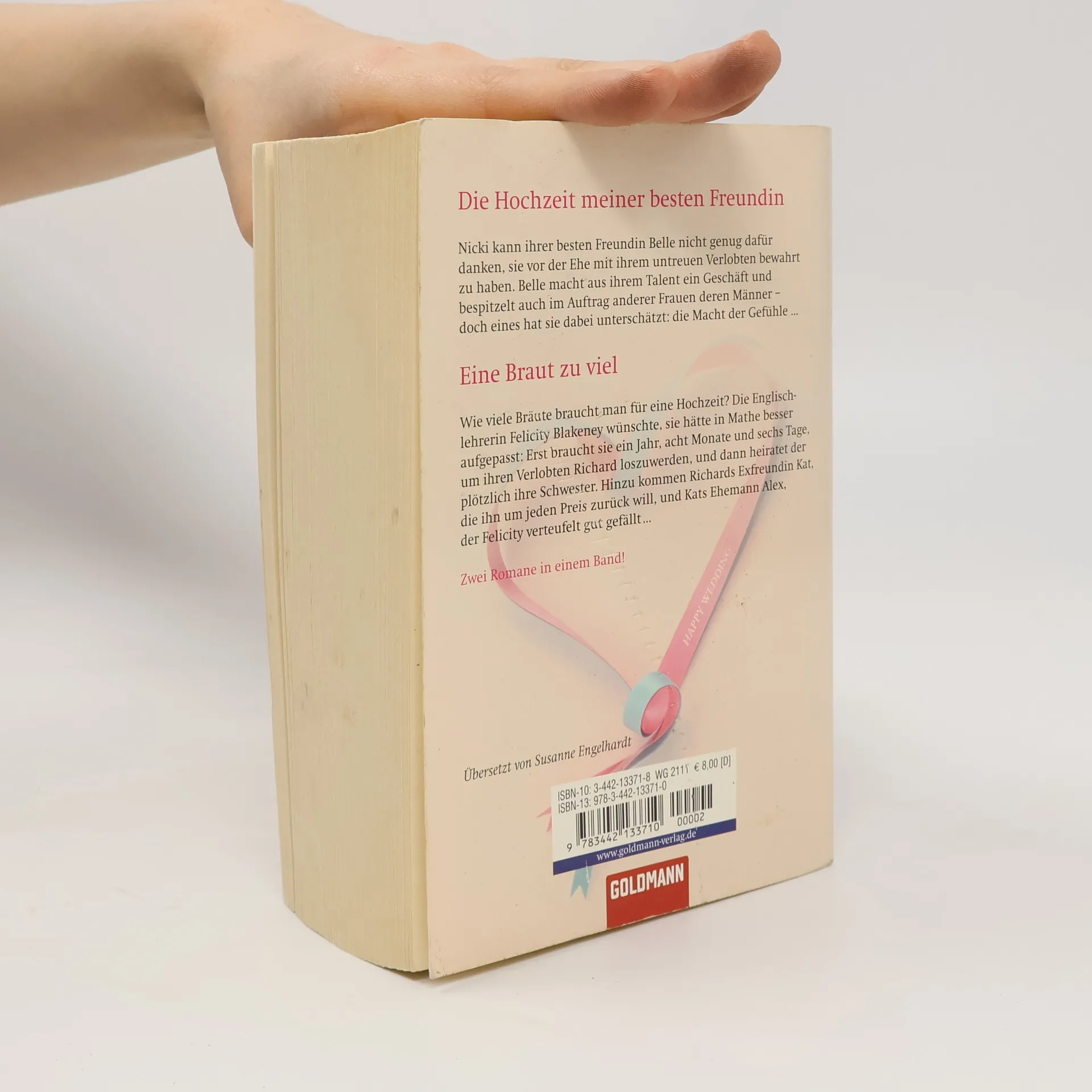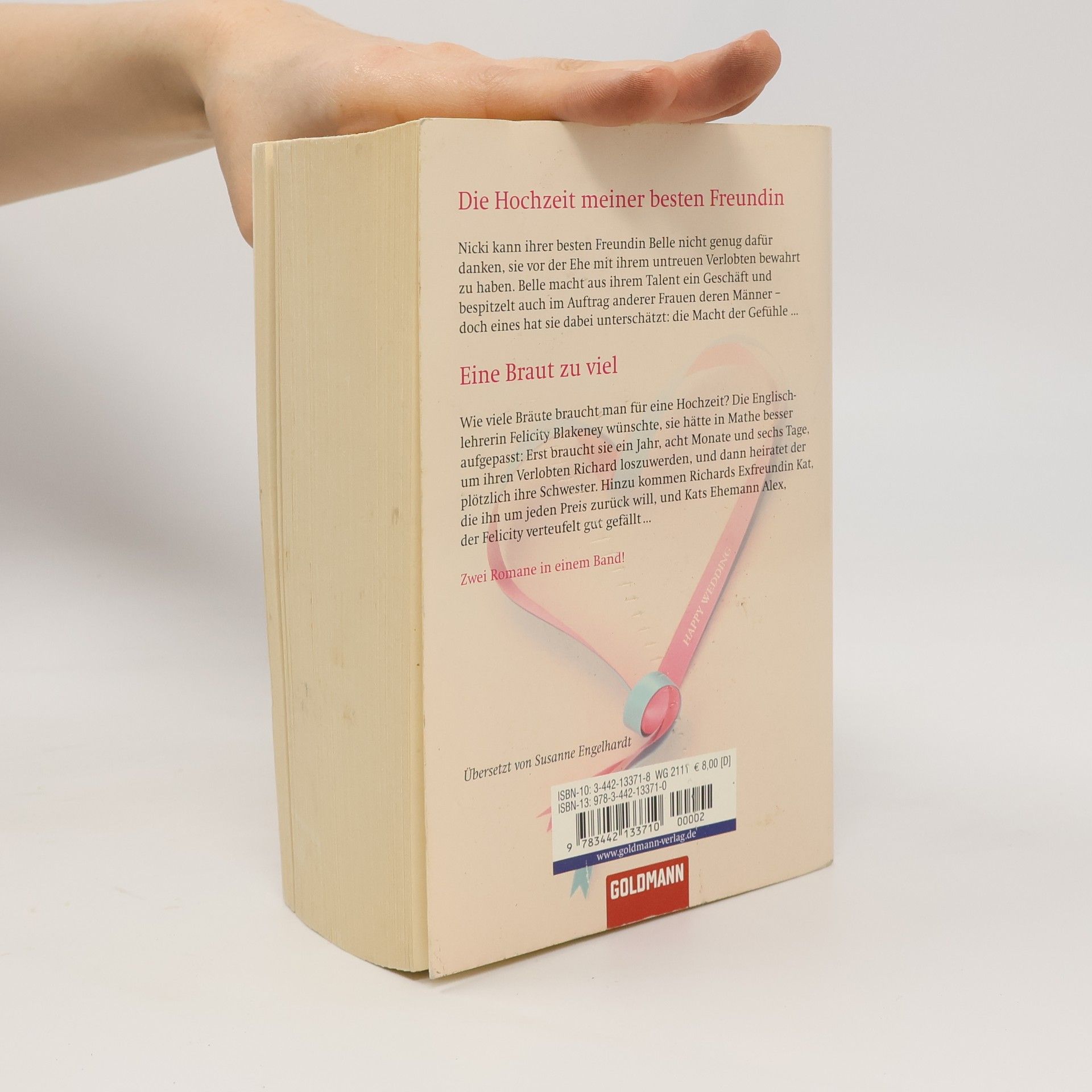 „Die Hochzeit meiner besten Freundin“: Belle reist von weither nach London an, um die Hochzeit ihrer besten Freundin Nicky zu begehen. Doch bevor Nicky ihrem Angebeteten das Ja-Wort geben kann, schickt sie Belle als Spionin aus, um herauszufinden, warum sich ihr Verlobter in letzter Zeit so merkwürdig benimmt. Und siehe da: Belle ertappt ihn in flagranti mit einer langbeinigen Brünetten. Nach dem ersten Schock ist Nicky mehr als dankbar, dass ihre beste Freundin sie vor dieser Ehe bewahrt hat. Belle macht aus ihrem Talent ein Geschäft und bespitzelt auch im Auftrag anderer Frauen deren Männer - bis sie sich an die Fersen des attraktiven Eddie Farrar heftet. Zwischen den beiden funkt es augenblicklich, und Belle gerät in eine haarsträubende Zwickmühle. „Eine Braut zu viel“: Wie viele Bräute braucht man für eine Hochzeit? Felicity Blakeney wünschte, sie hätte in Mathe besser aufgepasst: Erst braucht sie ewig lang, um ihren Verlobten Richard loszuwerden, und dann heiratet der plötzlich ihre Schwester. Hinzu kommen Richards Exfreundin Kat, die ihn um jeden Preis zurück will, und Kats Ehemann Alex, der Felicity verteufelt gut gefällt. Wie man dieses Durcheinander in den Griff bekommen soll, weiß Felicity allerdings auch nicht.