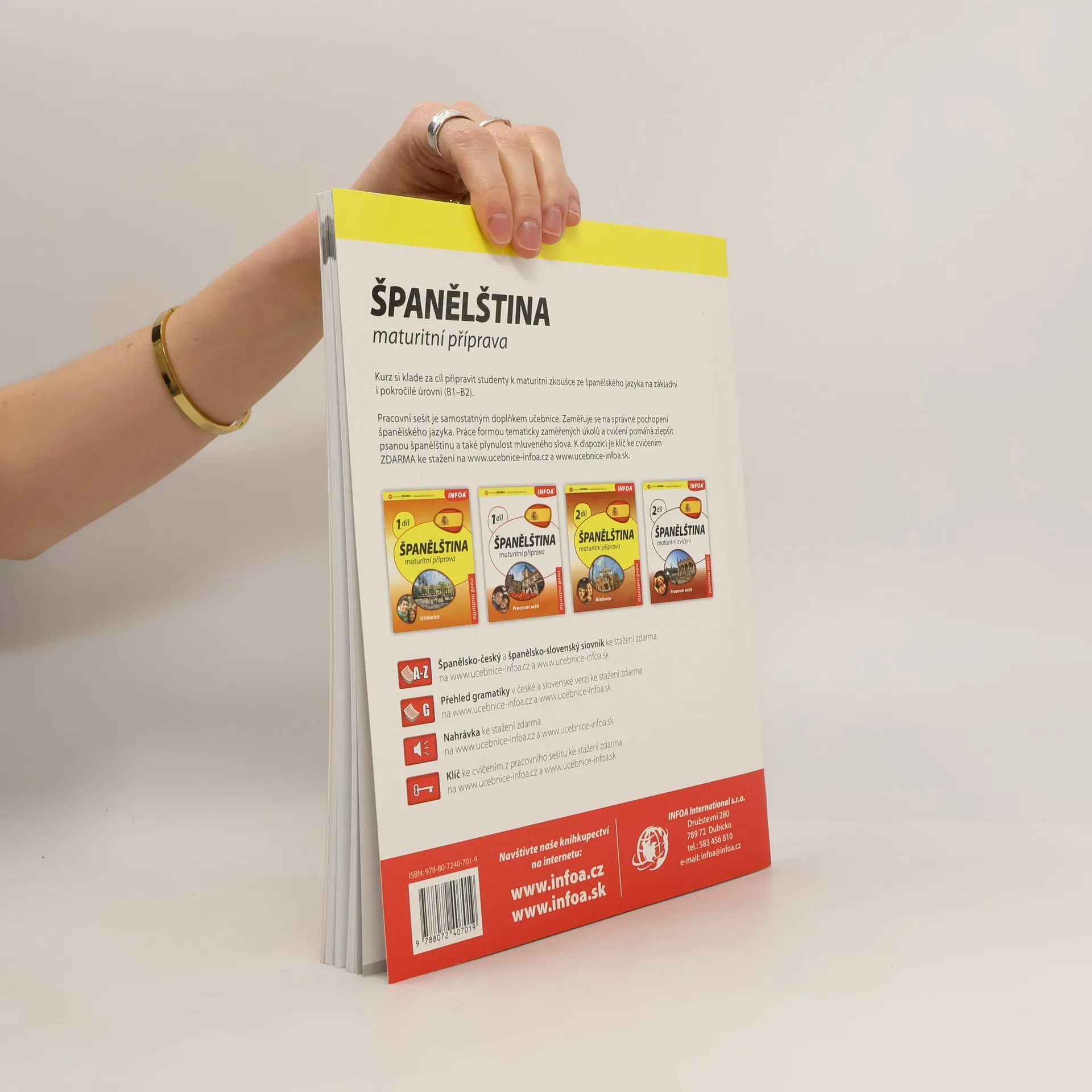 Učebnice je koncipována pro novou státní maturitu. Obsahuje témata jako Člověk, Dům, Škola, Práce, Zdraví, Rodina, Nákupy, Sport, Stát a společnost atd. Každé téma obsahuje lexikální cvičení, mluvnická cvičení, čtení, poslech, konverzaci a písemná cvičení.